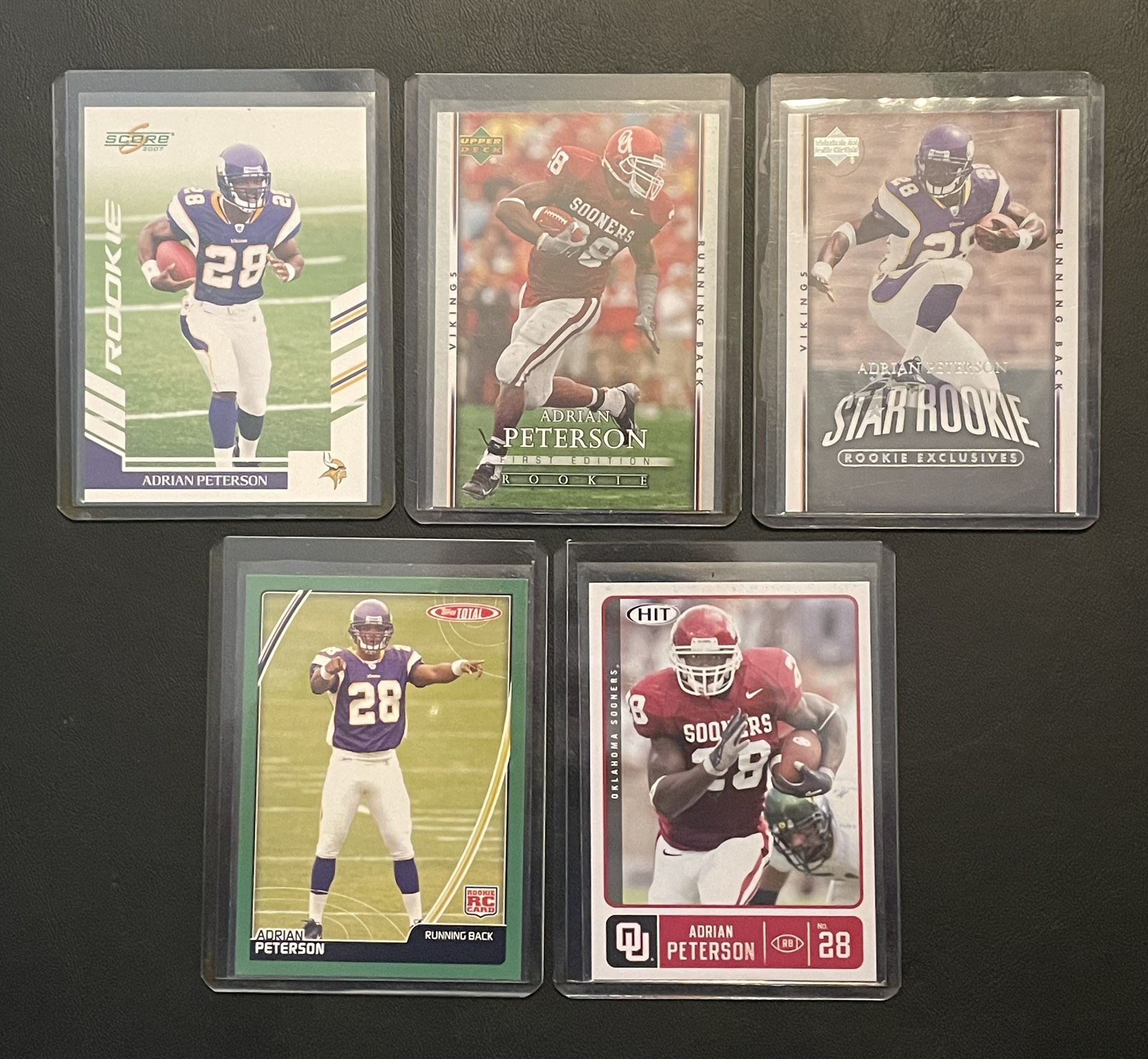 Lot of 5 2007 NFL Minnesota Vikings Adrian Peterson rookie cards