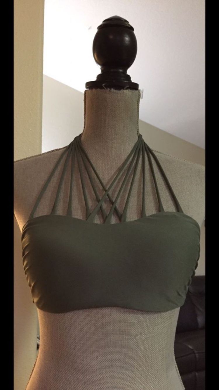 Women’s sexy olive green strappy bikini top swimsuit Medium!