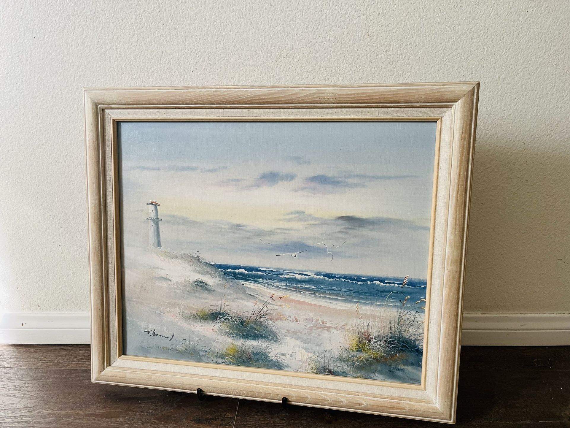 Vintage Original Oil Painting of A Beach and Lighthouse Scene Signed 19/24 In