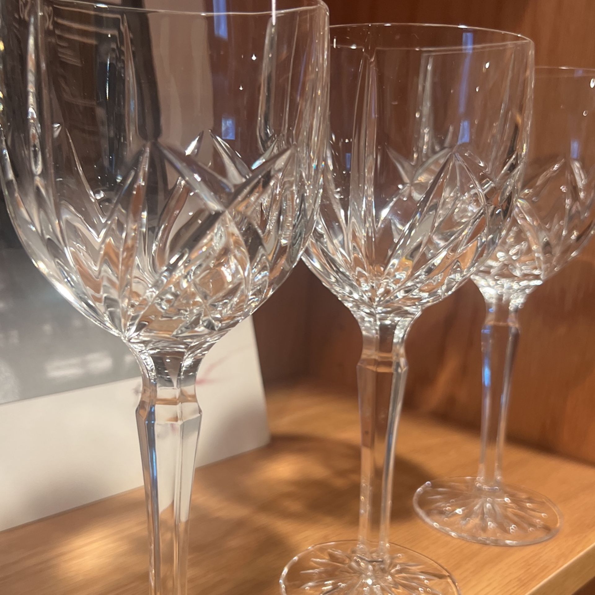 Set of three Waterford Marquis wine goblets in excellent condition. Approximately 8 3/4 in length