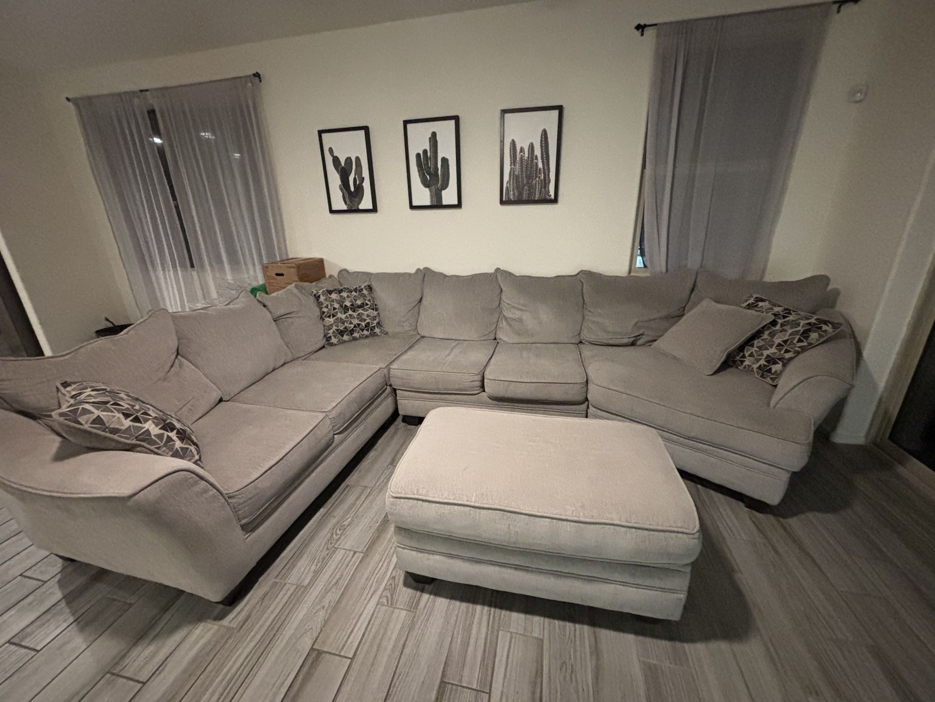 Light gray sectional, storage ottoman, and pillows 12.5 feet x 8 feet Pick up baseline ave and 27th