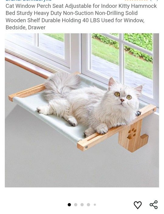 NEW Window cat perch. Can use in window sill, bedside, etc, Adjustable and can hold up to 40 Lbs. Bought it and never used it, brand new. Also comes with extra plush cover. See photos for more details.