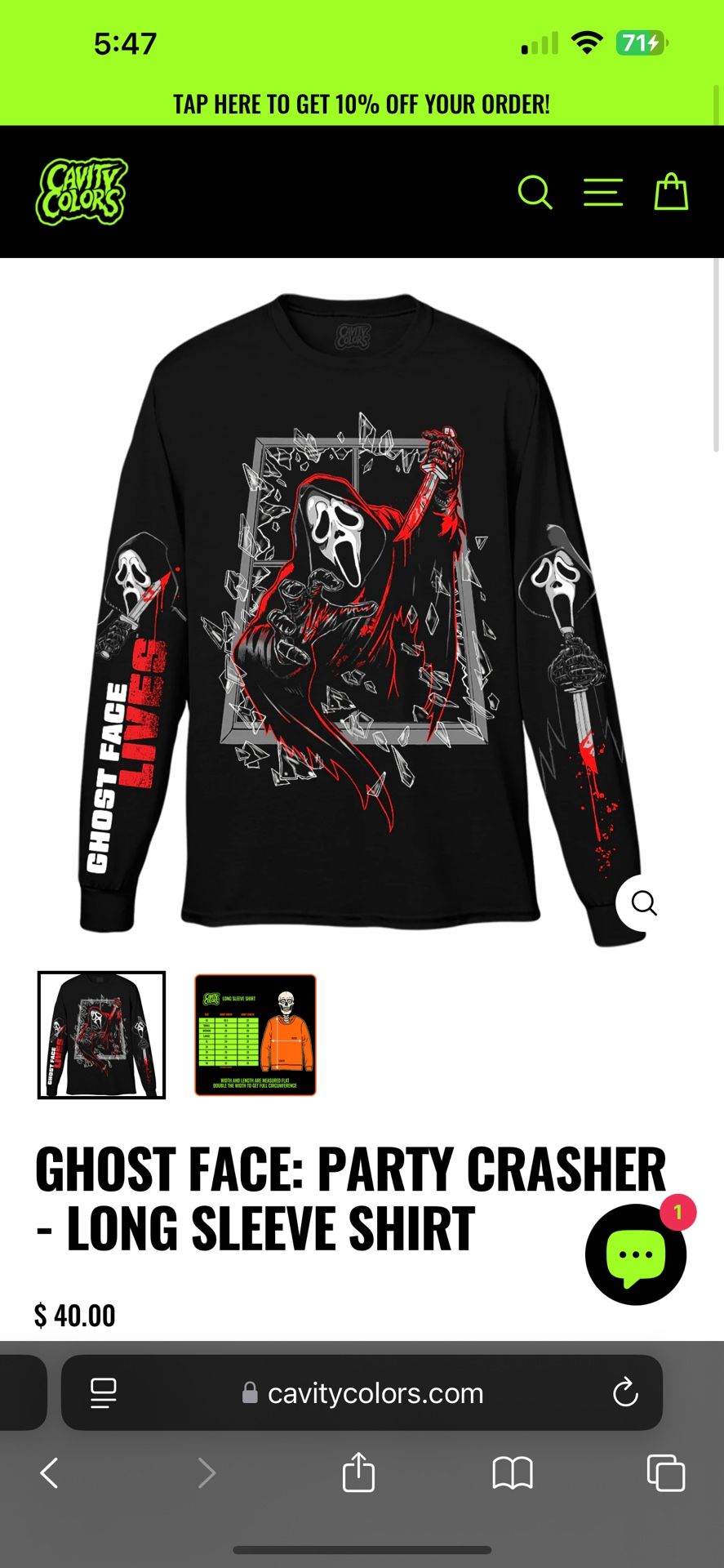 Brand New, Never Worn, Never Washed Cavity Colors GHOST FACE LIVES Unisex Long sleeve and Jogger Sweat Pants Size - SMALL $50