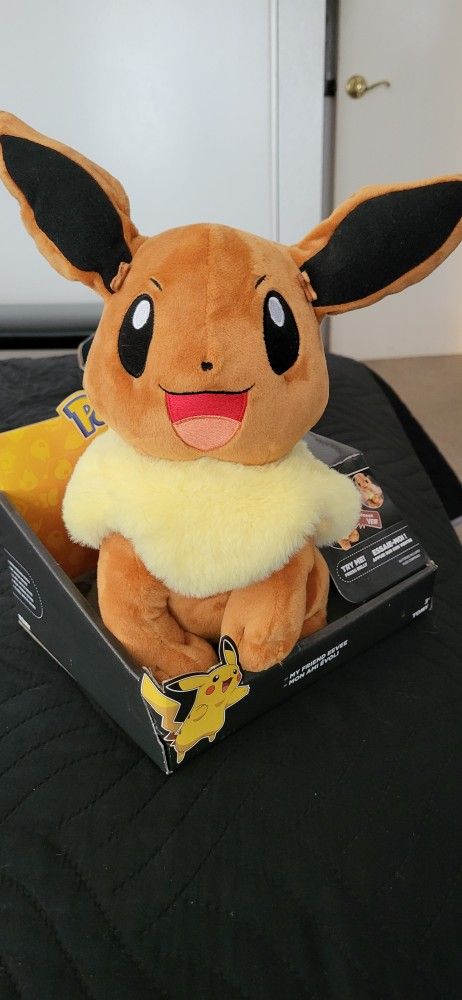 Both in box, tag (as shown) Eevee has 10 phrases. Never used, has been kept in a closet. No odor or sun fading. Perfect condition