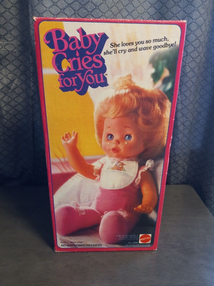 1979 Baby Cries For You New In Box Rare. Brandnew never played with. Comes with all original accessories such as a baby bottle. No batteries needed. Rare doll from 1979. Original production. Great for a gift or for collection.(Please see pictures for an idea of condition).