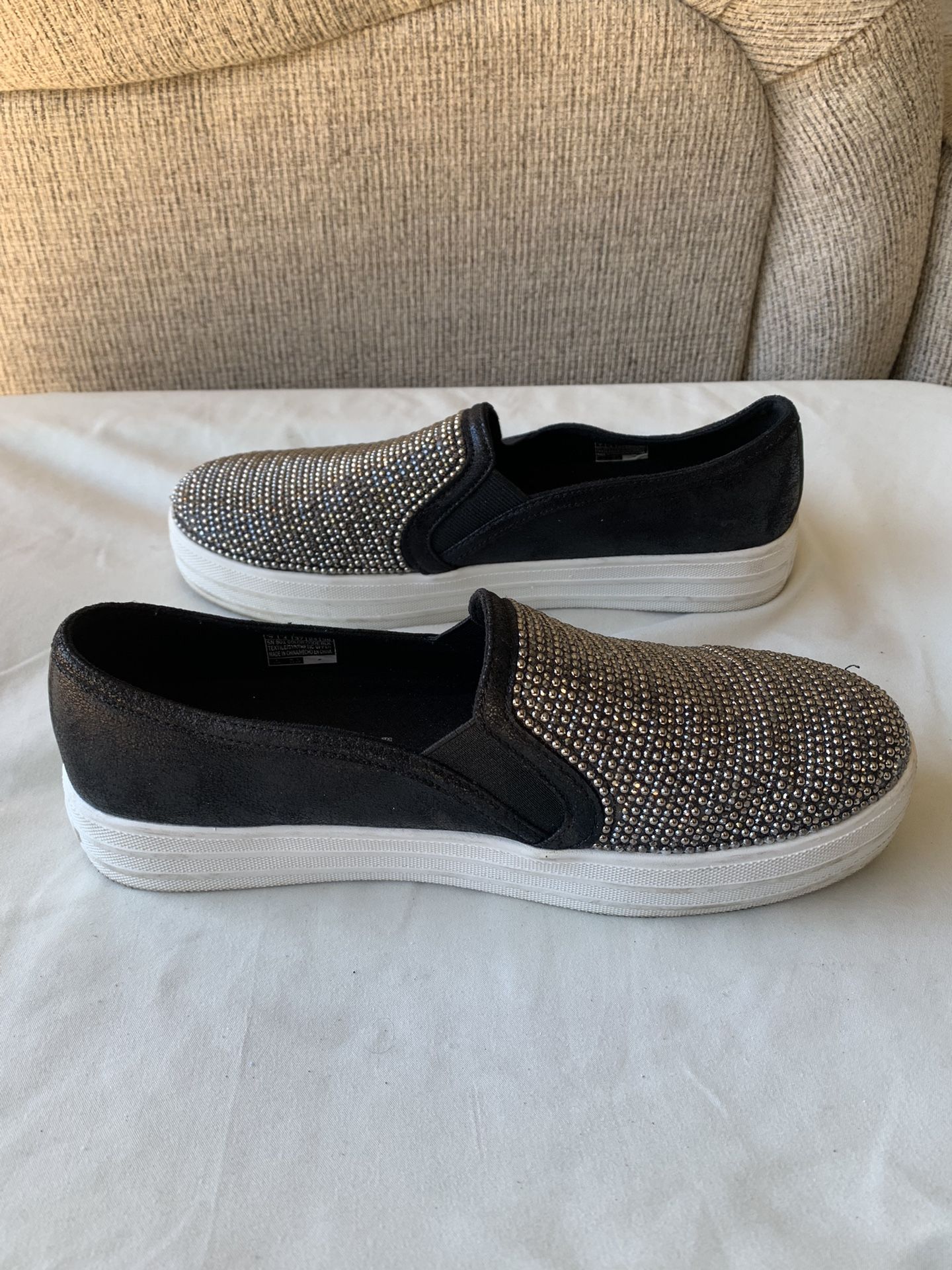 Skechers DOUBLE UP-SHINY DANCER Womens Slip-on Black Memory Foam size 7