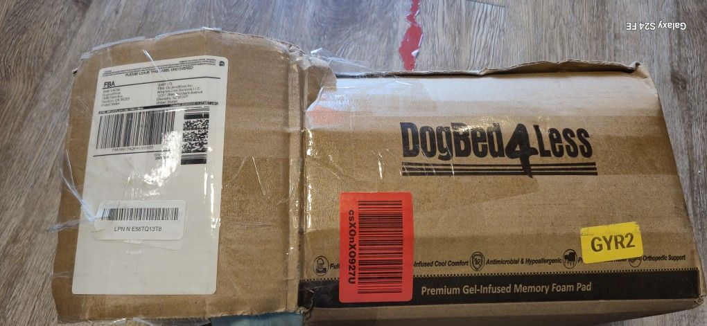 New open box but not removed unsure of measurements but im sure med large dog .. No cover just the memory foam pad ...