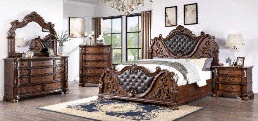 Brand New Brown Cherry Upscale 4pc Queen Bedroom Set (Available In California & Eastern King)