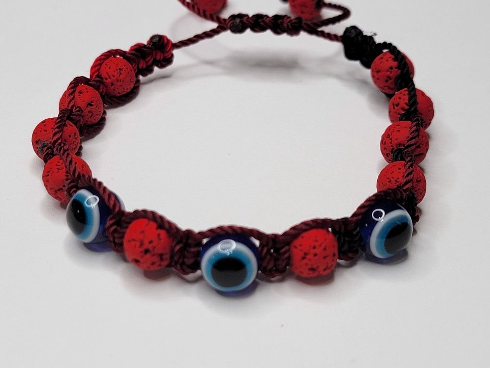 Evil Eye Protection Bracelet 8mm Red lava Beads, 7 inches to 8 inches wrist size beautiful for him or her, hand made if you want me to make it smaller or bigger you are welcome to let me know.