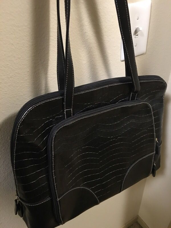 New women's tote with burgundy inner lining. Several pockets; great for work/personal/baby items. NEW.