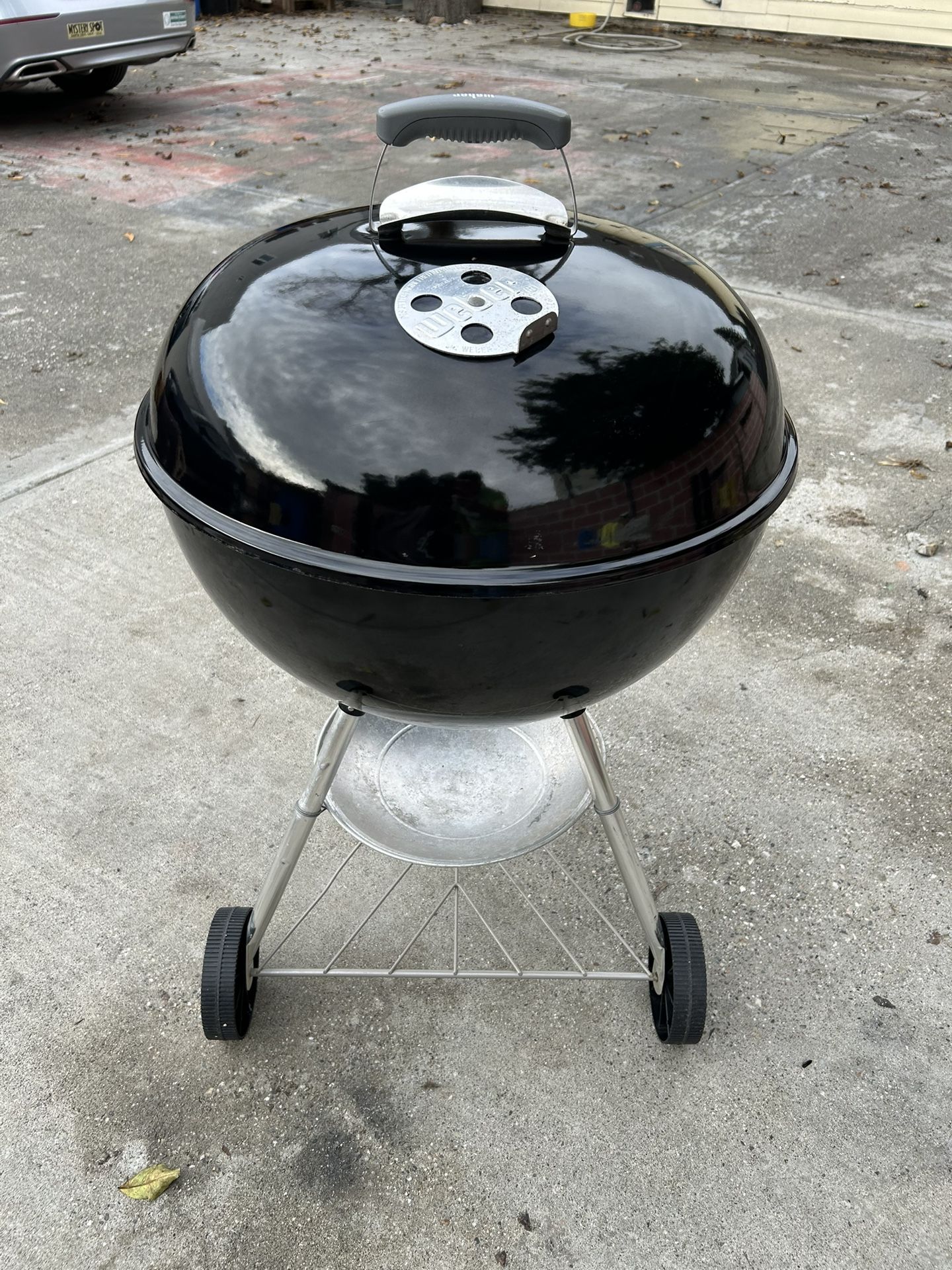 Used 22” black Weber bbq grill, Comes with chimney and cover.