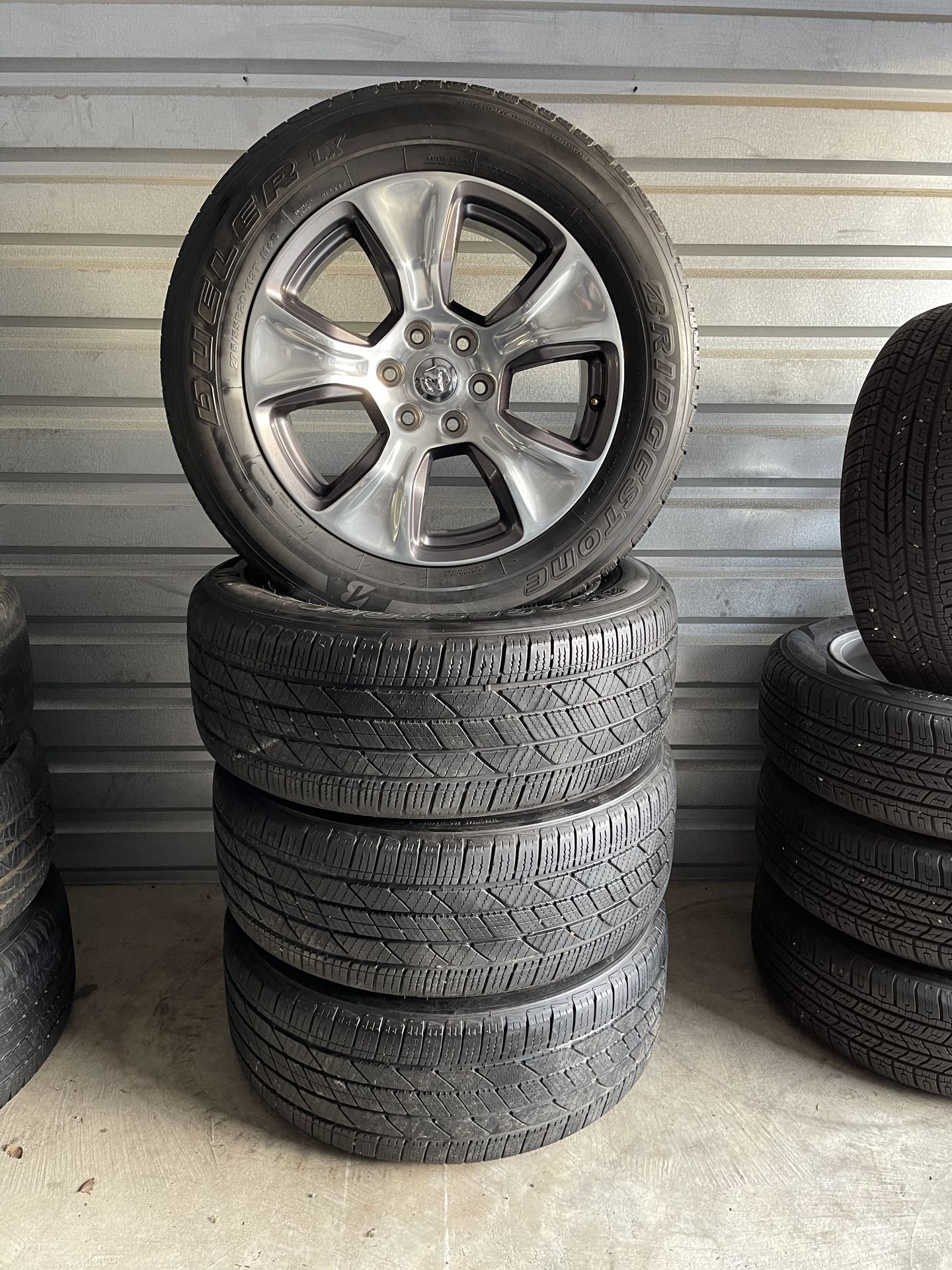 20” Bridgestone Dueler LX 275/55R20 Chevrolet, GMC and Dodge Ram 1500 Tires and Wheels Rims Selling my four tires and wheels 20” Bridgestone Dueler LX 275/55R20 Price is $580 Fits from 1999 to 2024 Chevrolet Silverado, Chevrolet Tahoe, Chevrolet Avalanche, Cadillac Escalade, Chevrolet Suburban, GMC Sierra, GMC Yukon and from 2019 to 2024 Dodge Ram 1500 6 lugs. Vendo 4 llantas y rines 20” Bridgestone Dueler LX 275/55R20 Precio $580 Le caben de 1999 to 2024 Chevrolet Silverado, Chevrolet Tahoe, Chevrolet Avalanche, Cadillac Escalade, Chevrolet Suburban, GMC Yukon, GMC Sierra y 2019 al 2024 Dodge Ram 1500 6 virlos.
