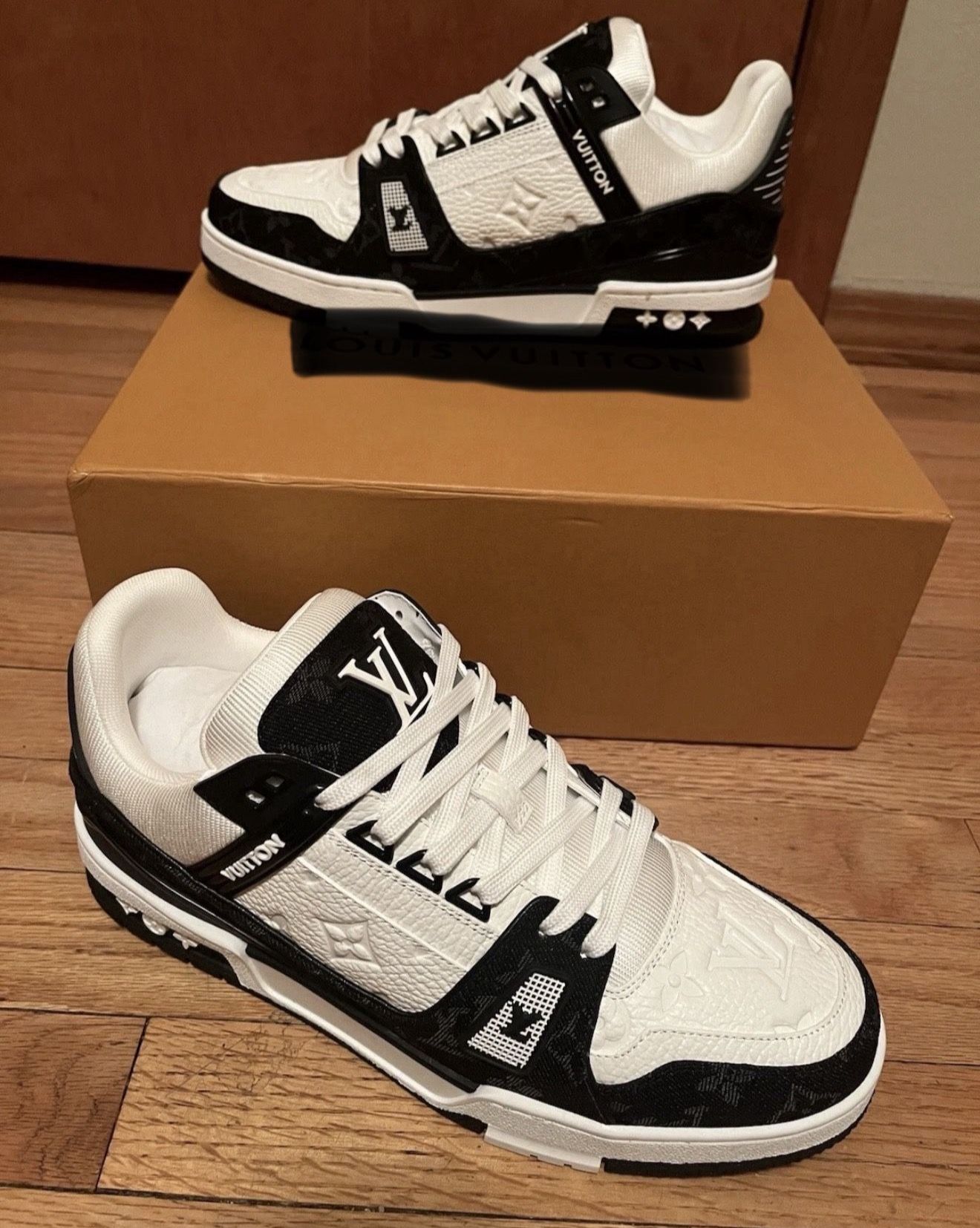 Sneakers | Black & White π₯ β’ Clean black & white colorway β’ Embossed monogram leather look β’ Solid, heavy feel β premium build β’ Comfortable for daily wear β’ Brand new, never worn β’ Comes with box π Designer look without the designer price β οΈ Inspired style β priced accordingly π Delivery available (extra charge) π© DM to purchase β limited pairs I