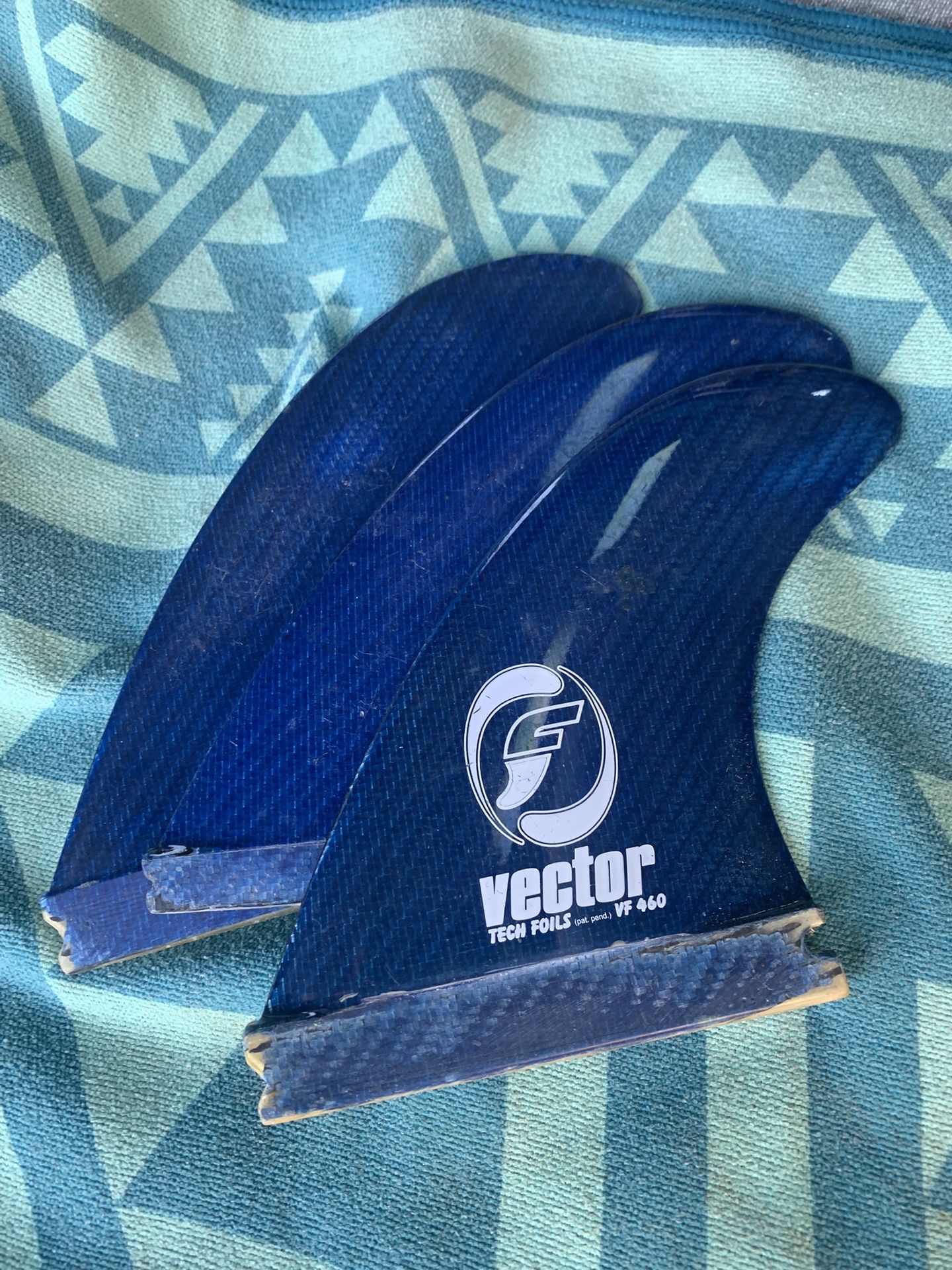 Future Vector Foil VF 460 Thruster surfboard fin set Good condition- quality solid fiberglass carbon fiber construction — $40 FIRM Futures Vector fins incorporates a complex curved inside foil design to increase drive and speed with reduced drag. Tri Fin set for Futures boxes.