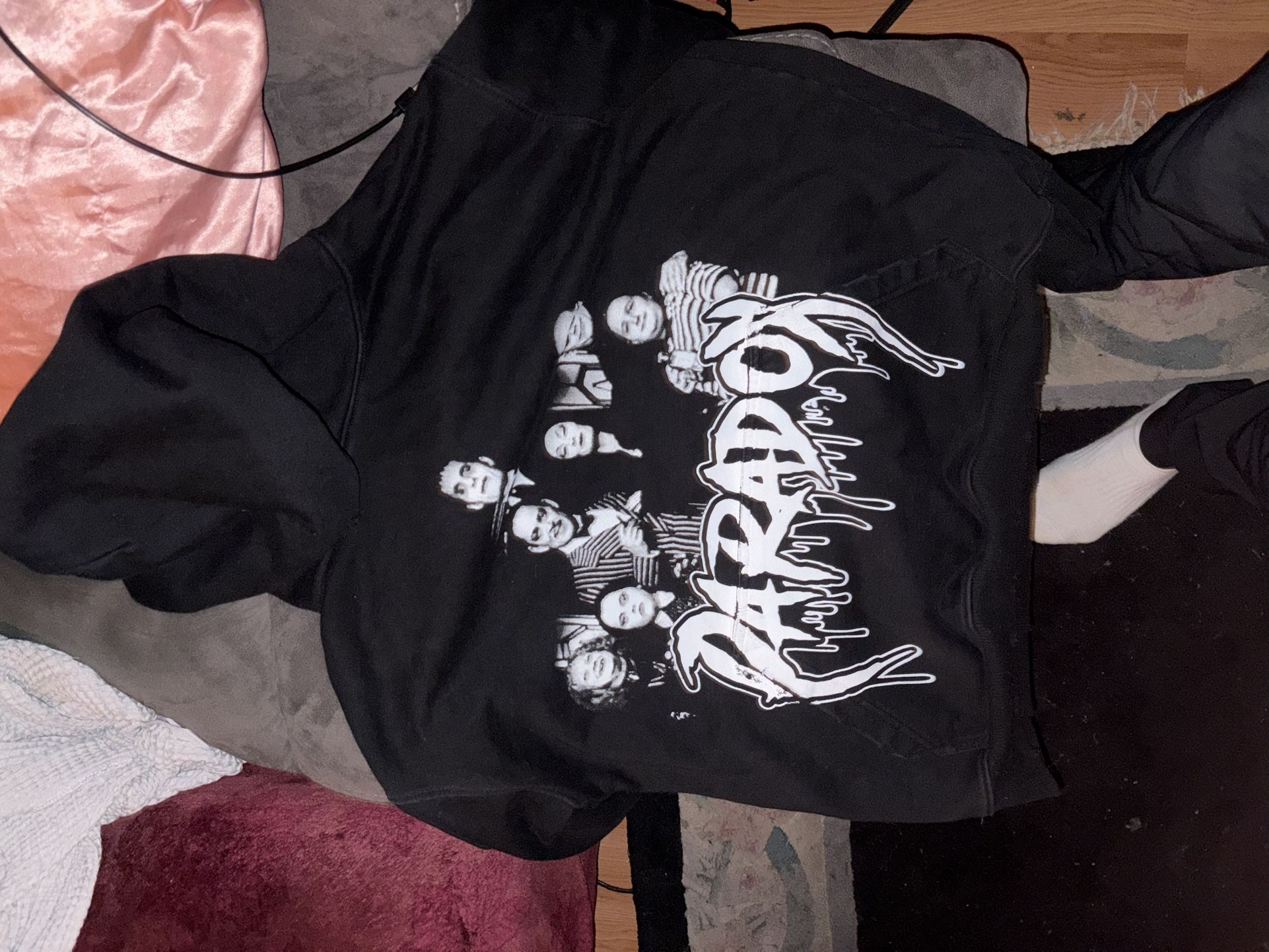 Paradox hoodie black and white size medium if ur interested text me.