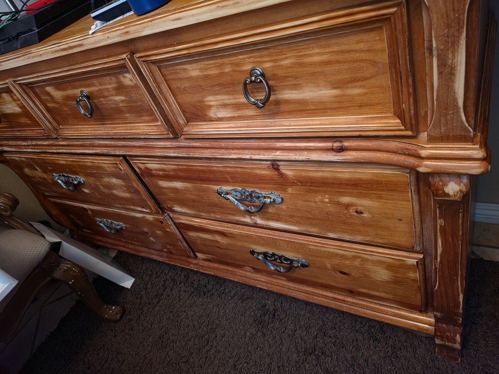 Real Wood Bed Frame + Dresser with mirrior