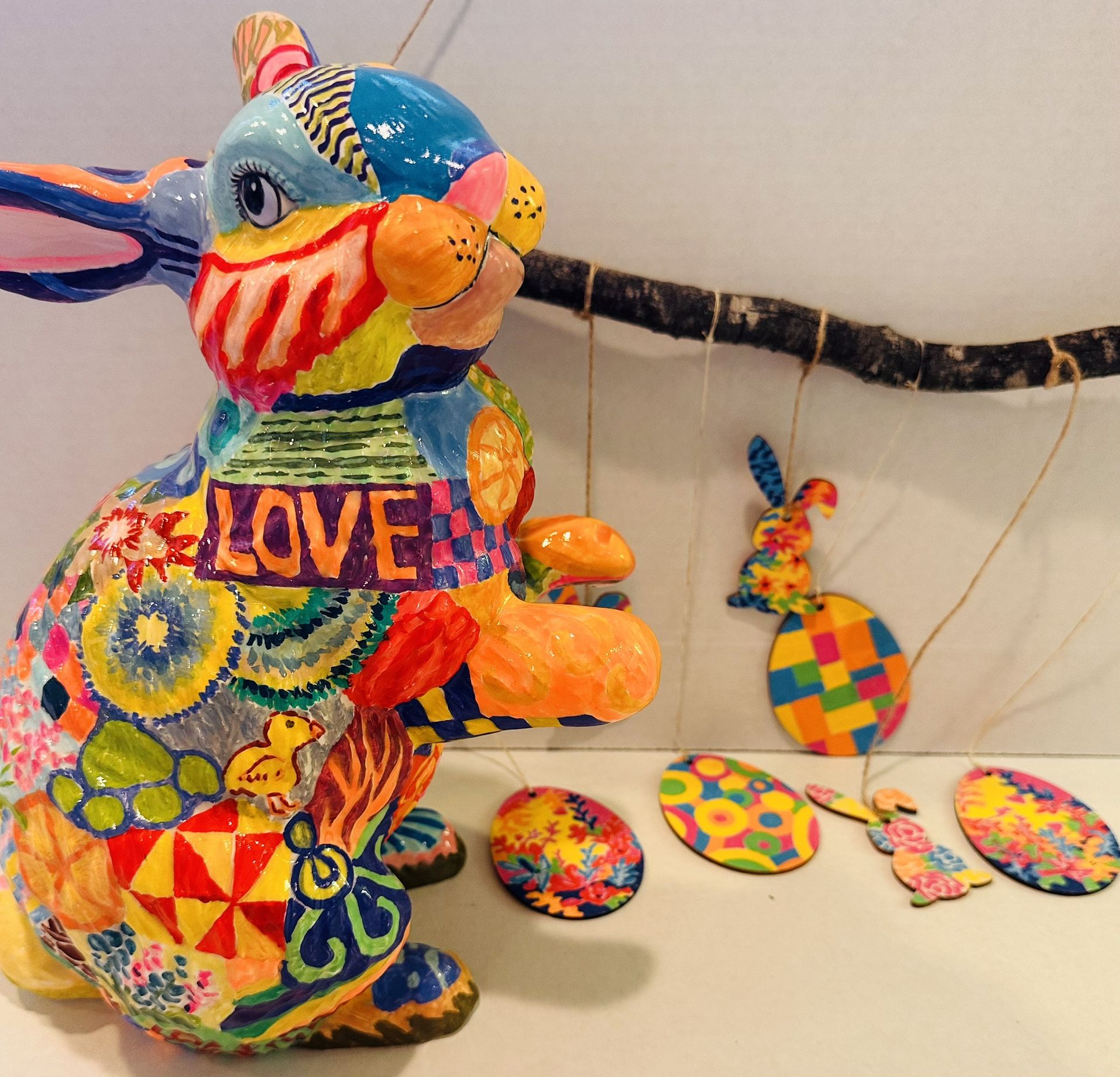 Hand Painted Ceramic Rabbit pairs well with Hand Painted Mobile