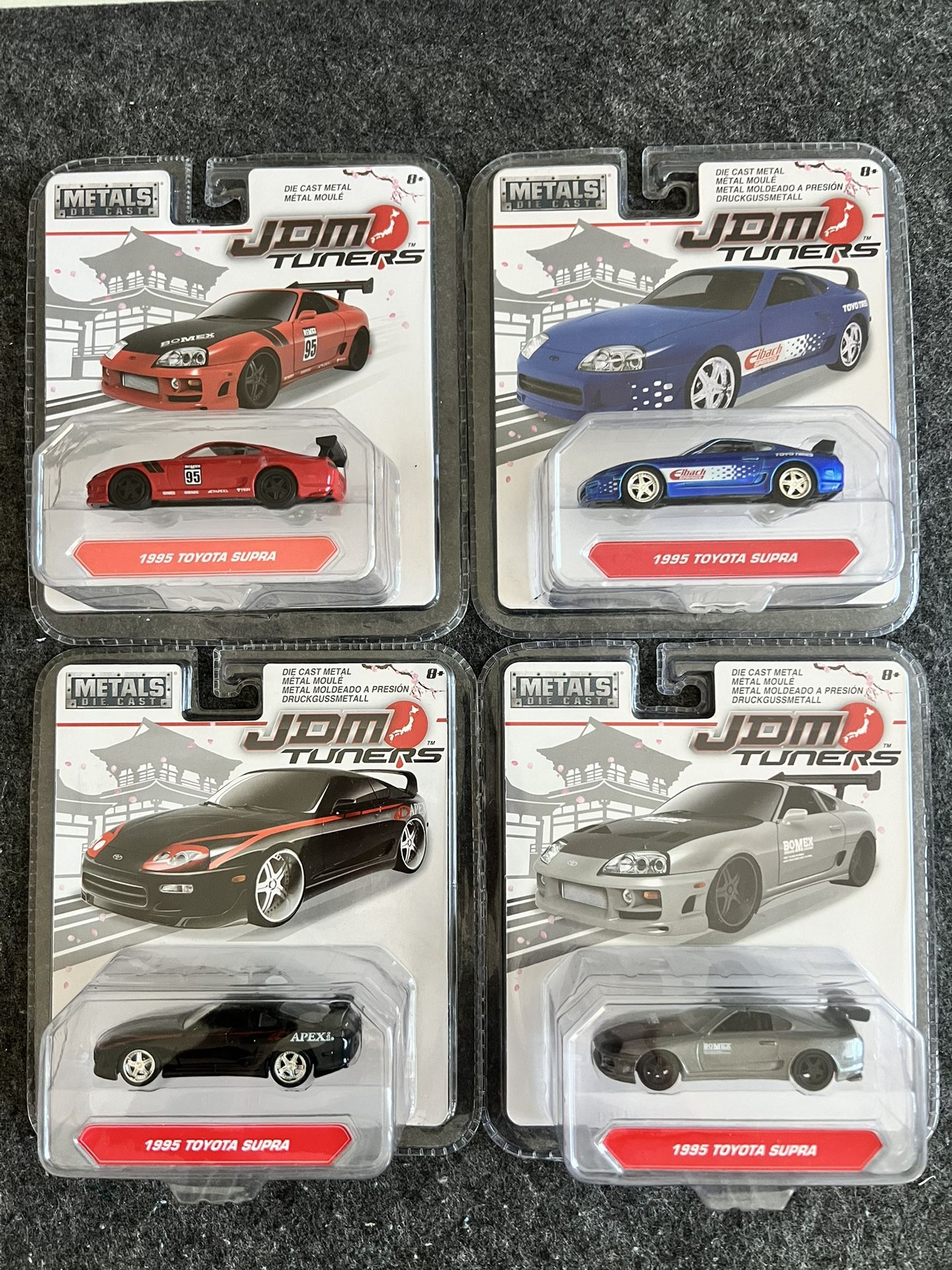 They’re 1:64 scale. All brand new and in excellent condition. Asking $8 each or $120 for all 18 cars. Hotwheels, Nissan Skyline GTR, Toyota Supra, Honda NSX, Hot Wheels, Matchbox