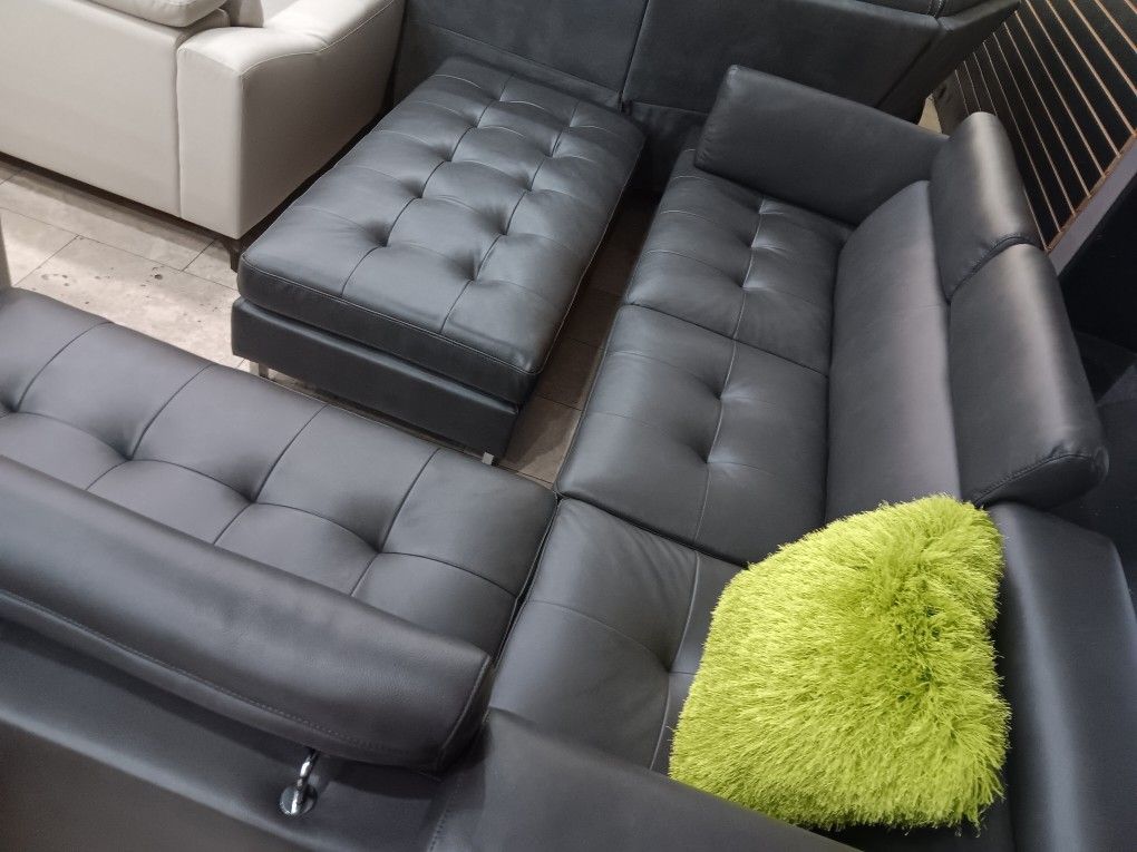 *Weekly Feature*--- Ibiza Mature Gray Leather Sectional Sofa W/Ottoman---Delivery And Easy Financing Available🤝