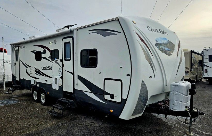 VIDEO WALK-AROUND: Available on my YouTube channel ๐ Adventure-Ready Family Trailer Looking for a rugged, family-friendly travel trailer built for the Northwest outdoors? This trailer delivers comfort, durability, and smart design in one package. Perfect for families, hunters, or weekend explorers who want a trailer thatโs as tough as the terrain they travel. ๐ง Key Specs & Features Length: 31 ft. 2 in. Width: 96 in. Height: 11 ft. 6 in. Dry Weight: ~6,200 lbs GVWR: 7,995 lbs Hitch Weight: ~720 lbs Fresh Water Capacity: 56 gal Gray Water Capacity: 40 gal Black Water Capacity: 40 gal Propane Capacity: 60 lbs (dual tanks) Sleeping Capacity: Up to 6+ ๐ Interior Comfort Bunkhouse Layout: Double-over-double bunks for kids or guests Master Bedroom: Queen bed with privacy doors and overhead storage Living Area: Convertible dinette and space for dog kennels, recliner chairs, or the furniture you're wanting Kitchen: 6 cu. ft. refrigerator 3-burner range with oven Microwave Double-basin sink with high-rise faucet Bathroom: Tub/shower combo, vanity, and foot-flush toilet ๐ฒ Built for the Outdoors Four Seasons Package: Insulated, heated, and enclosed underbelly for year-round camping Off-Road Chassis: Custom-built by Outdoors RV with shock absorbers and heavy-duty axles Aluminum Frame Construction: Lightweight yet durable Fiberglass Exterior: Sleek look with rugged protection Power Awning: Easy shade at the push of a button Outdoor Shower: Rinse off after a hike or fishing trip ๐ฏ Why Buyers Love It Sleeps the whole family comfortably (up to 8) Northwest-built for mountain, forest, and desert terrain Large tanks for extended boondocking trips Reliable build quality from Outdoors RV โ known for rugged trailers that last ๐ Donโt miss your chance to own a Creekside 27BHS โ the perfect balance of durability, comfort, and family-friendly design. Whether itโs a weekend getaway or a cross-country trip, this trailer is ready to roll.