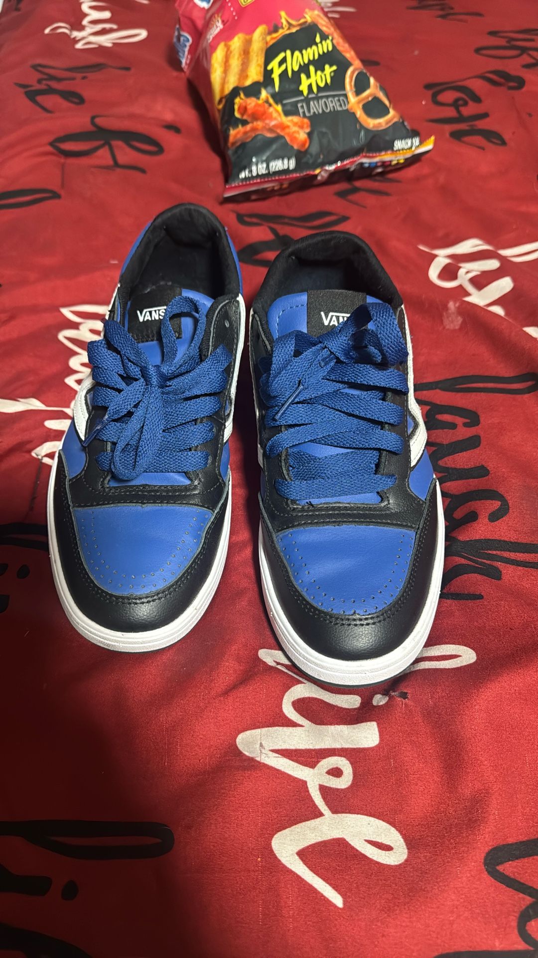 Brand new vans never been worn all blue with black and white stripes on the side size 6.5 men 8 women