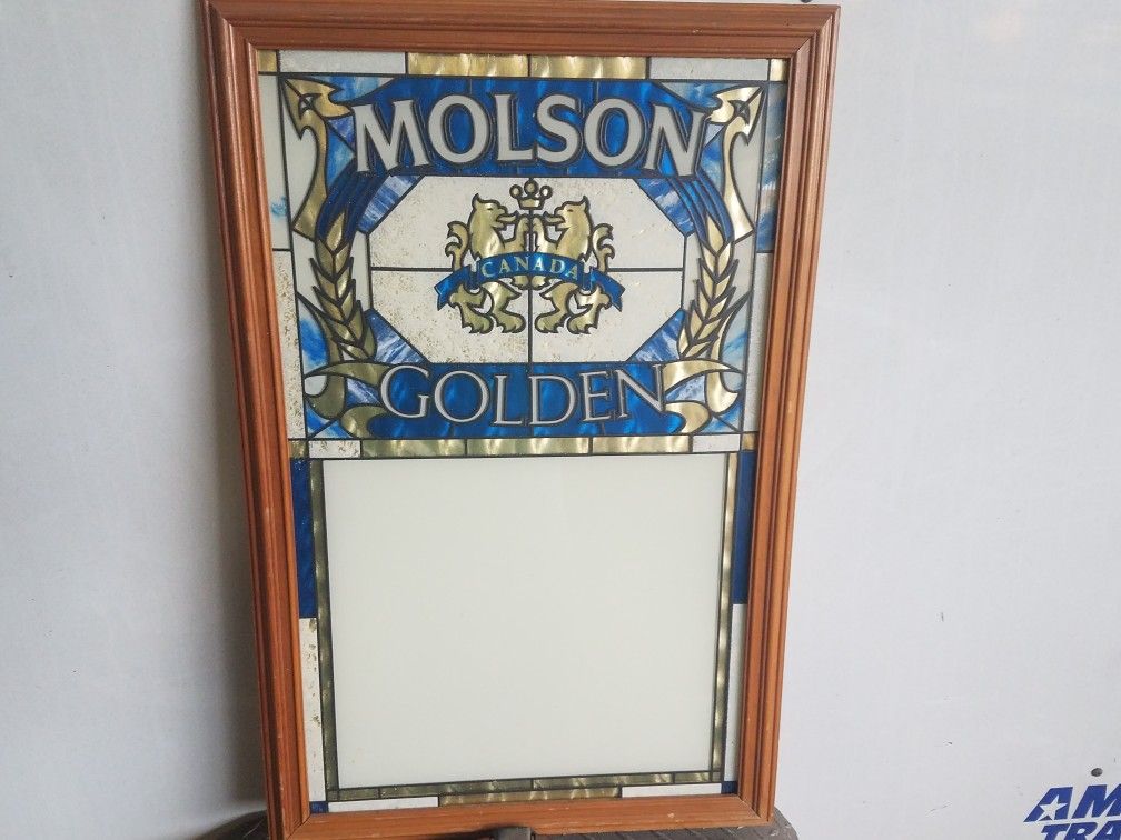 Large bar mirror beam have perfect! Molson beer signed glass like mosaic style