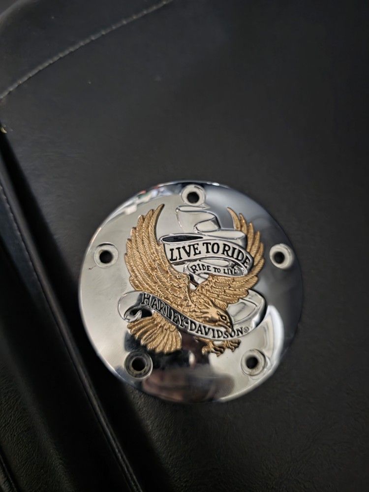 Harley Davidson Fuel Cap Cover & Timer Cover. Live to Ride model. Came off a 2014 Harley Davidson Electra Glide. $65 for the pair. Have the screws for the Timer Cover, but you will need the lock/button for the gas Cap. $65 for the pair. Or willing to trade for Willie G Derby cover....
