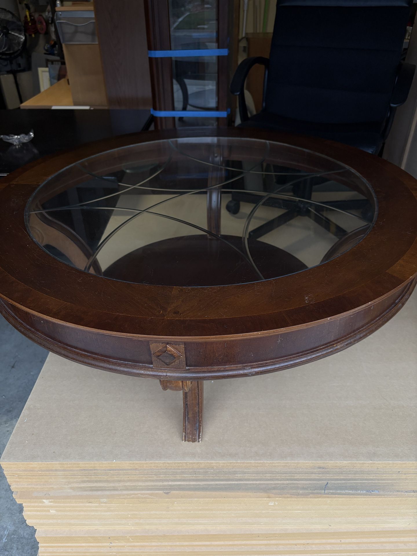 40” Round x 18”h Wood and Glass Coffee Table Great Condition