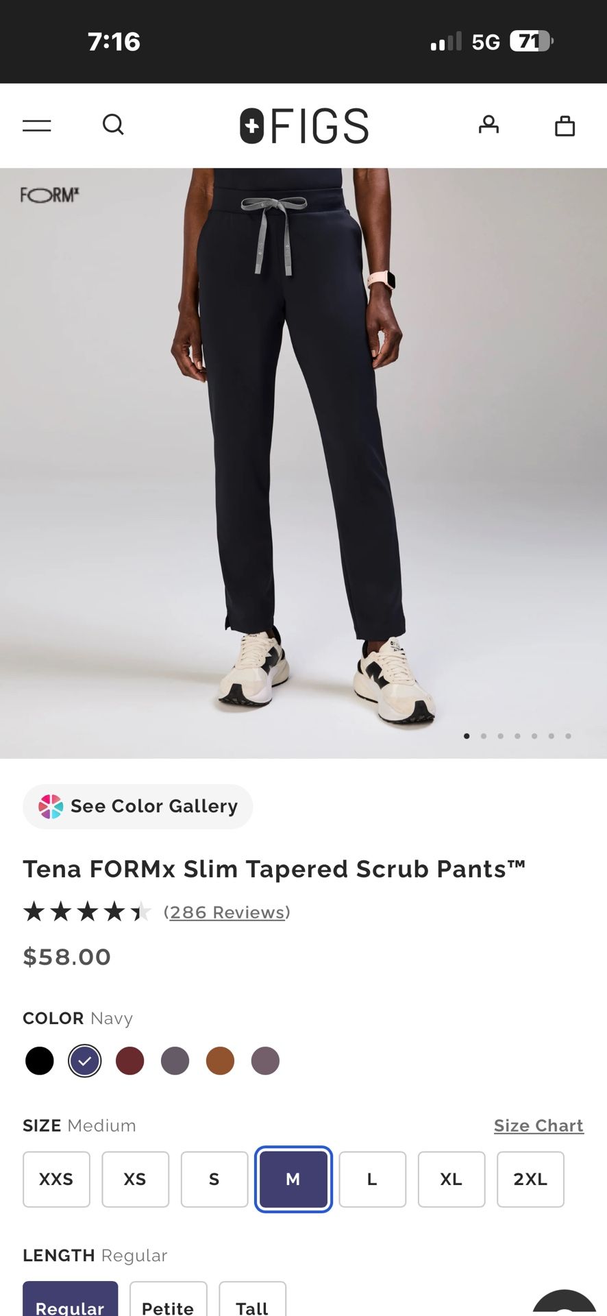 Tena FORMx Slim Tapered Scrub Pants Size medium regular