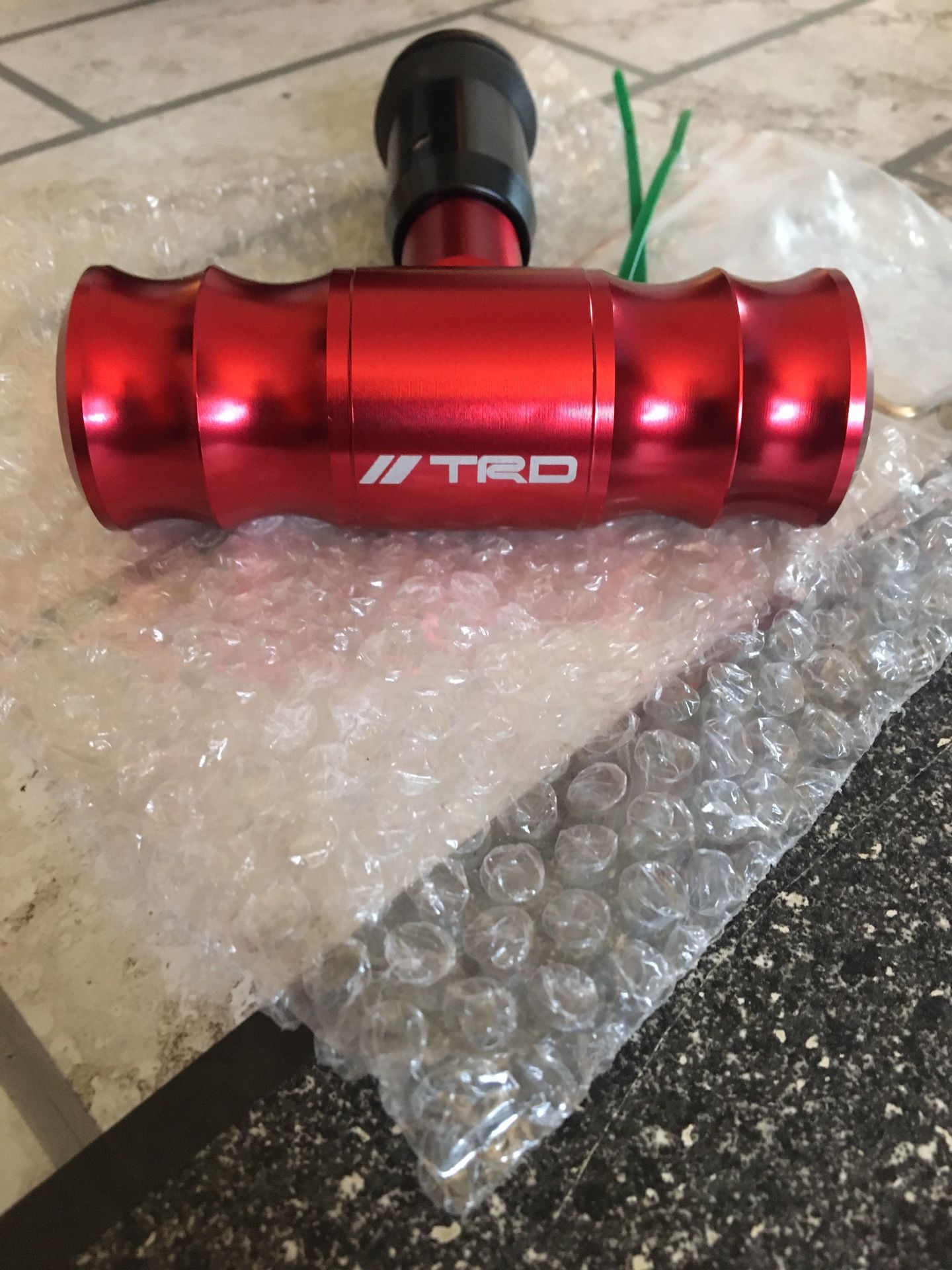 BRAND NEW IN BOX NEVER USED BOUGHT WRONG ONE. TRD CAR OR TRUCK SHIFTER KNOB ALUMINUM RED .MADE WITH HEAVY DUTY ALUMINUM ALLOY COMES WITH NECESSARY TOOL FOR EASY INSTALLATION ASKING $25