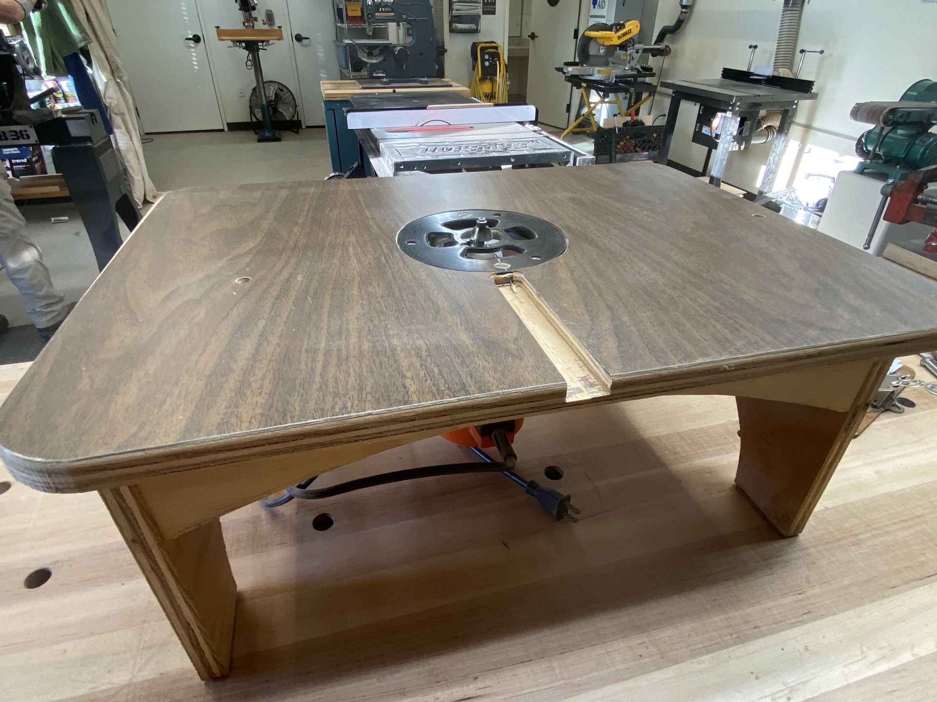 Router table customed made by master craftsman using 3/4 inch plywood. 9 3/4” H x 24” W x 18” D. Router model - 7614 Type 1; 25000 RPM; 8.5 amps; 20 volts AC only. No collet wrenches or bits. Located near Rte 15 and Pomerado Rd in Scripps Ranch