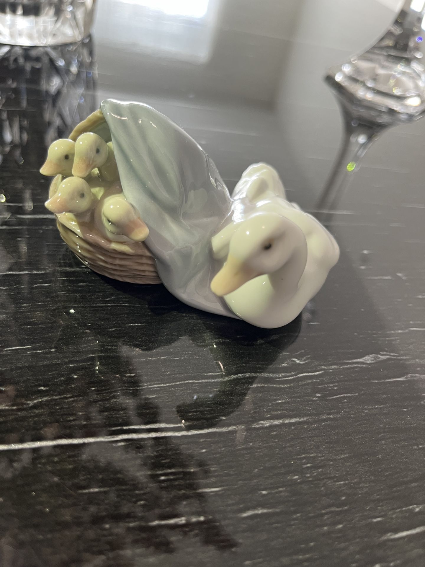 Lladro Glossy white porcelain duck And Ducklings Figurine