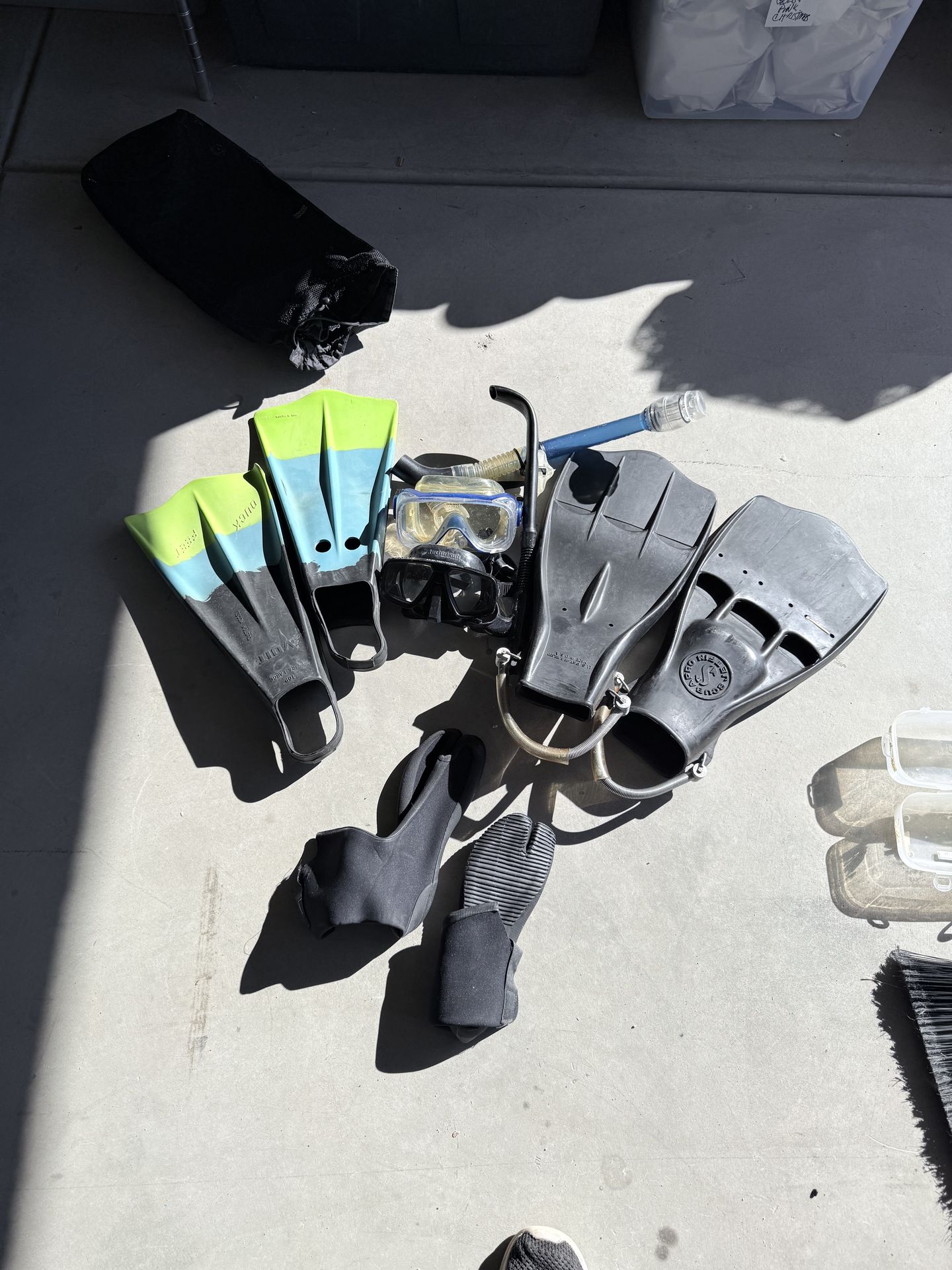 Voit extra large fins Scuba Pro Jetfins 2 Masks 2 snorkels Large bootie shoes