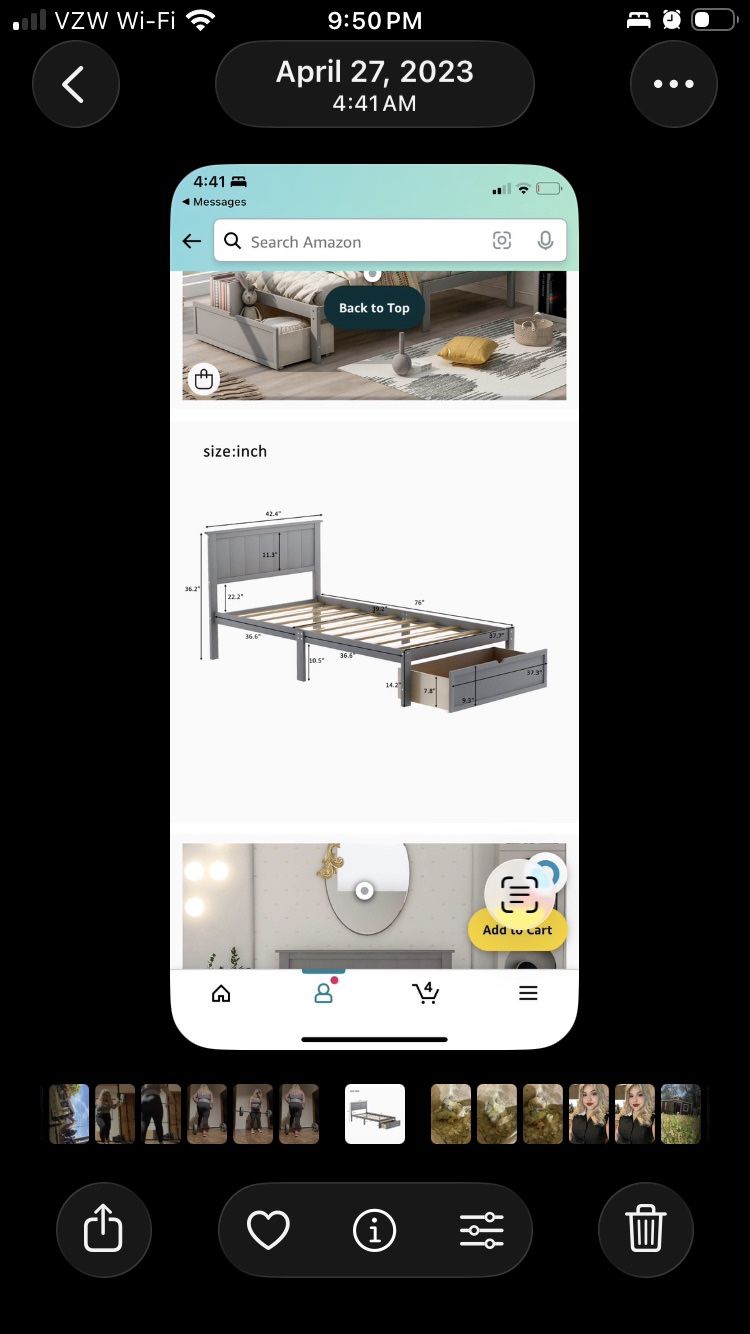 Grey twin wooden bed can disassemble or take as is. Has a shelf under for clothing in good condition just bottom drawer has a splint but still holds Measurements: Length: 78 inches Width: 40.5 inches available for pickup, local drop off, or meet halfway