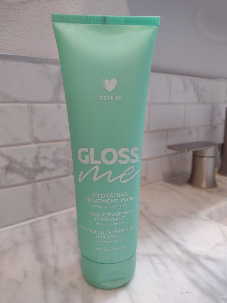 New, never used, 8.5 oz bottle of Gloss Me Hydrating Hair Mask by DESIGNME hair products. Retails originally for $32.
