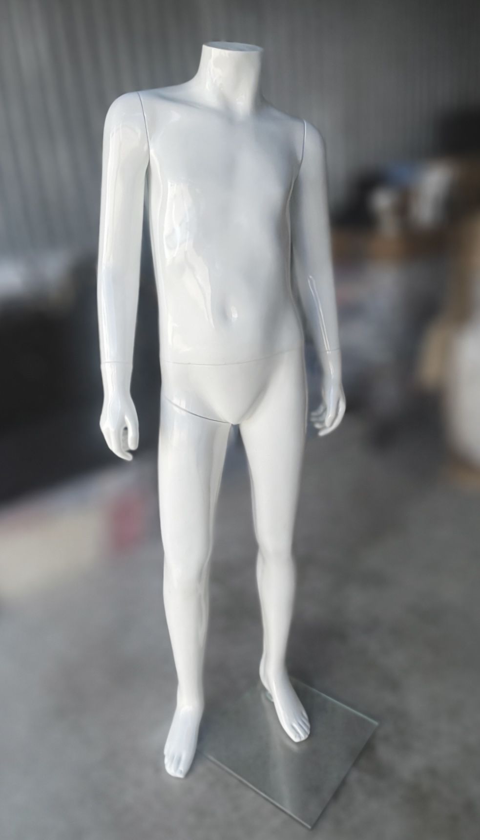 Headless white female mannequin, perfect for boutique displays, pop-ups, photography, or clothing resellers. Glossy white finish • Sturdy square glass base V Freestanding & stable V Approx. 4 ft tall Great for displaying dresses, tops, swimwear, or activewear. Ideal for: • Boutique owners • Online sellers • Market vendors • Window displays Still have 1 available