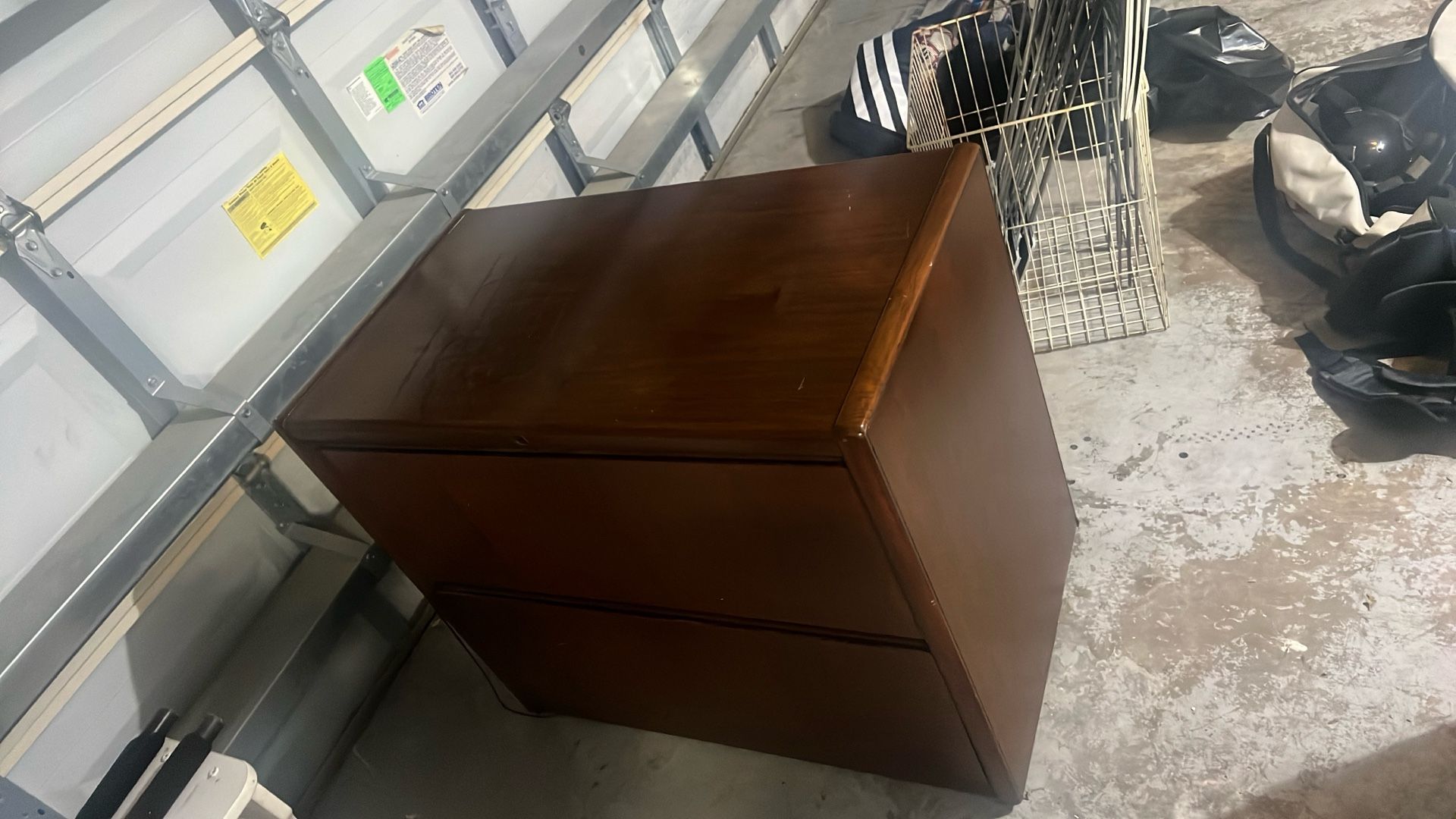 Free file cabinet 35 wide x 20" deep x 30" tall Works fine and is very heavy and durable Top not perfect but free Flexible on pick up time