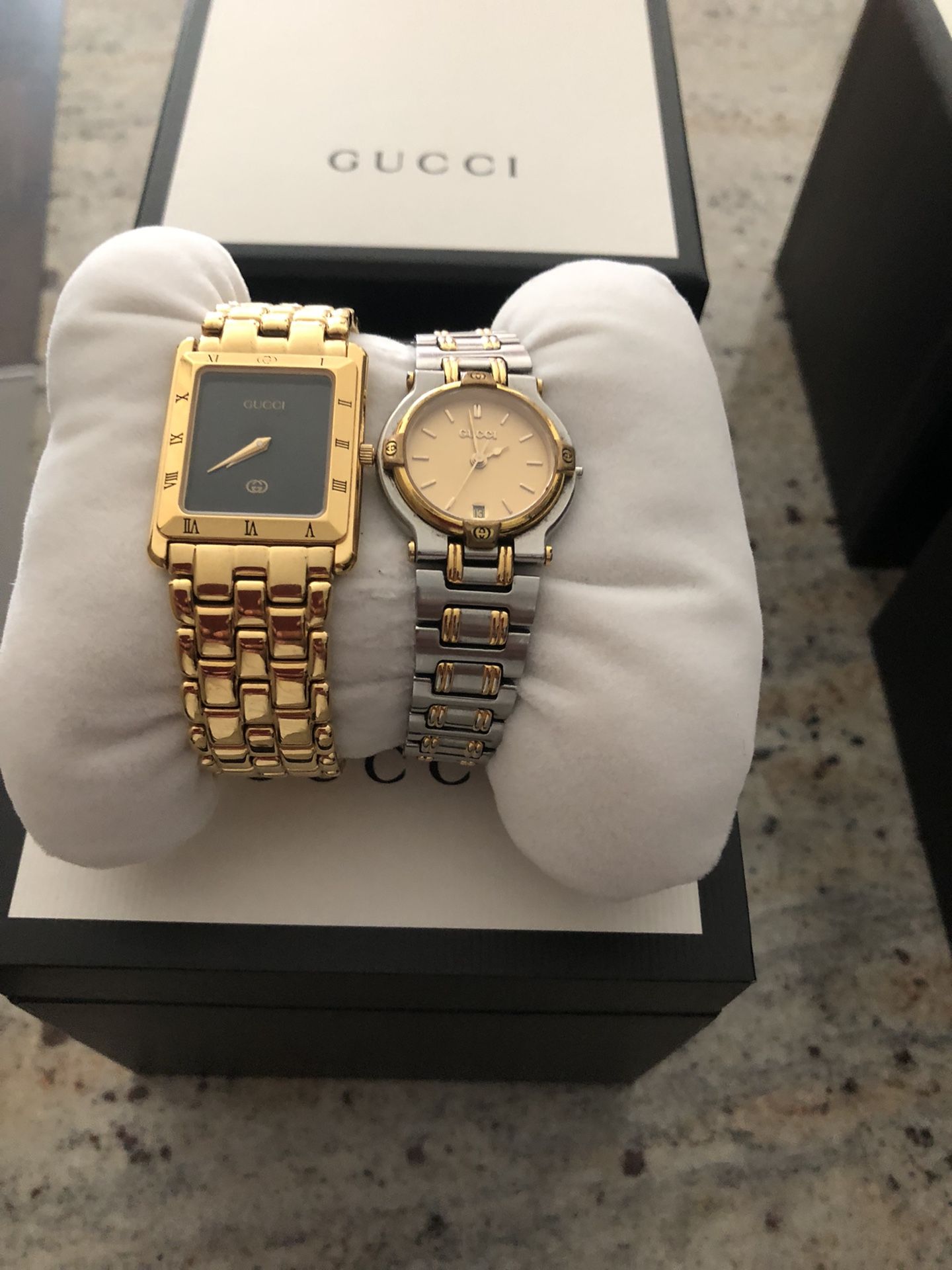 Authentic Gucci watches squared watch needs a new battery round watch is working . $350 for both or $175 a piece