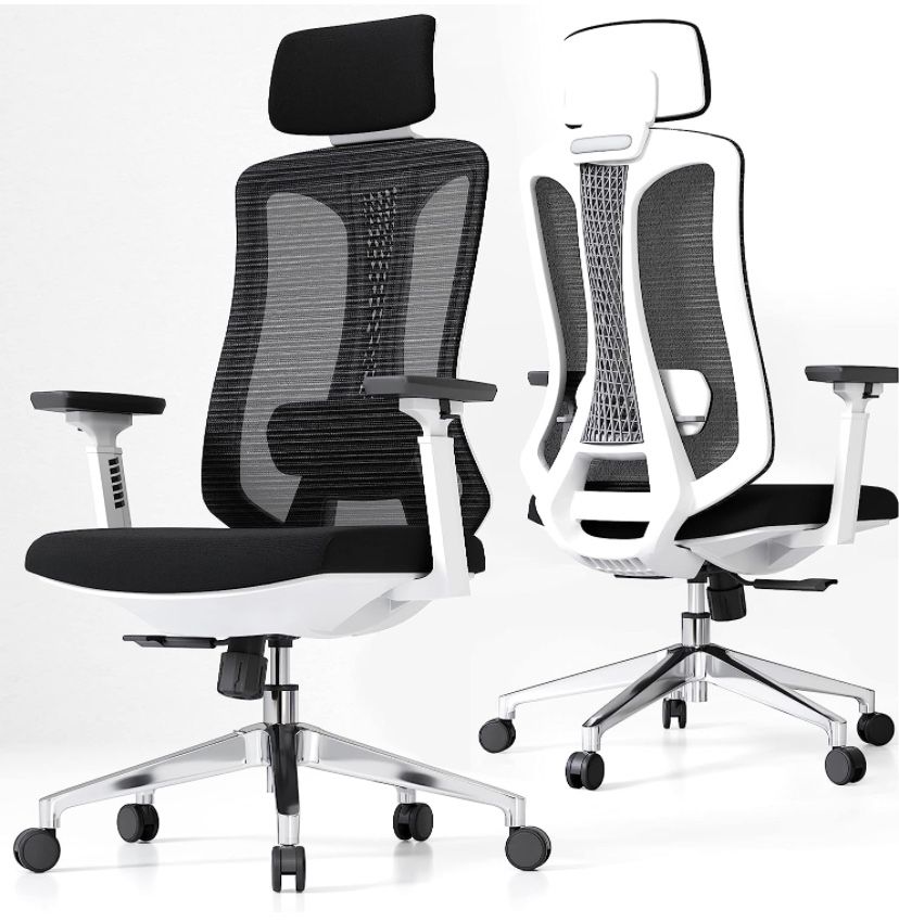 Ergonomic Office Chair, High Back Desk Chair with 3D Armrest, Adjustable Lumbar Support & Headrest, Thick Seat Cushion, Mesh Computer Chair with Tilt Function, White Executive Swivel Chair