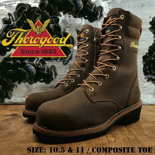 New THOROGOOD Logger Series Composite Toe Waterproof 600g Insulated Work Boots Botas Size: 10.5 & 11