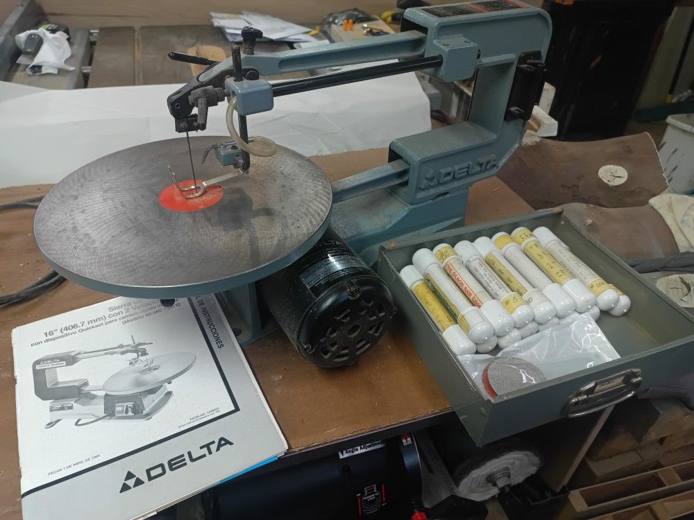 Delta 16" 2 speed scroll saw. Model 40-560 Type II. Excellent condition. Comes with hundreds of blades, several spare throat plates, owners manual, and 4 books with tips, techniques, templates, patterns, plans, etc.