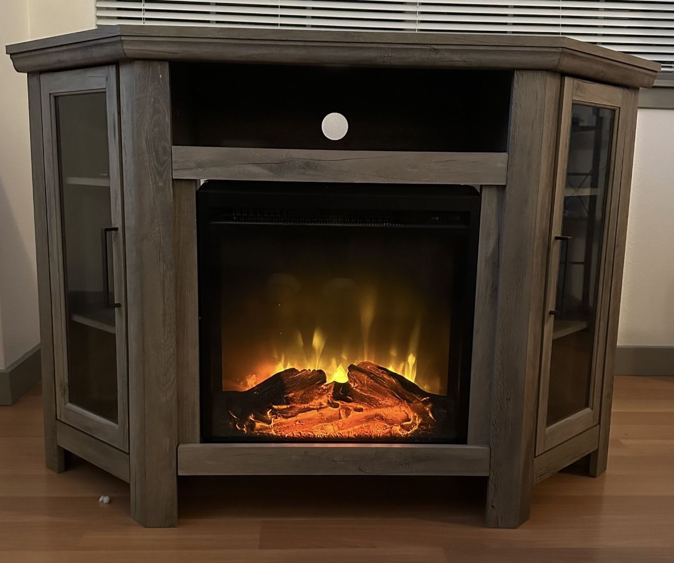 Fireplace Corner TV Stand , 48 Inch, Grey Wash