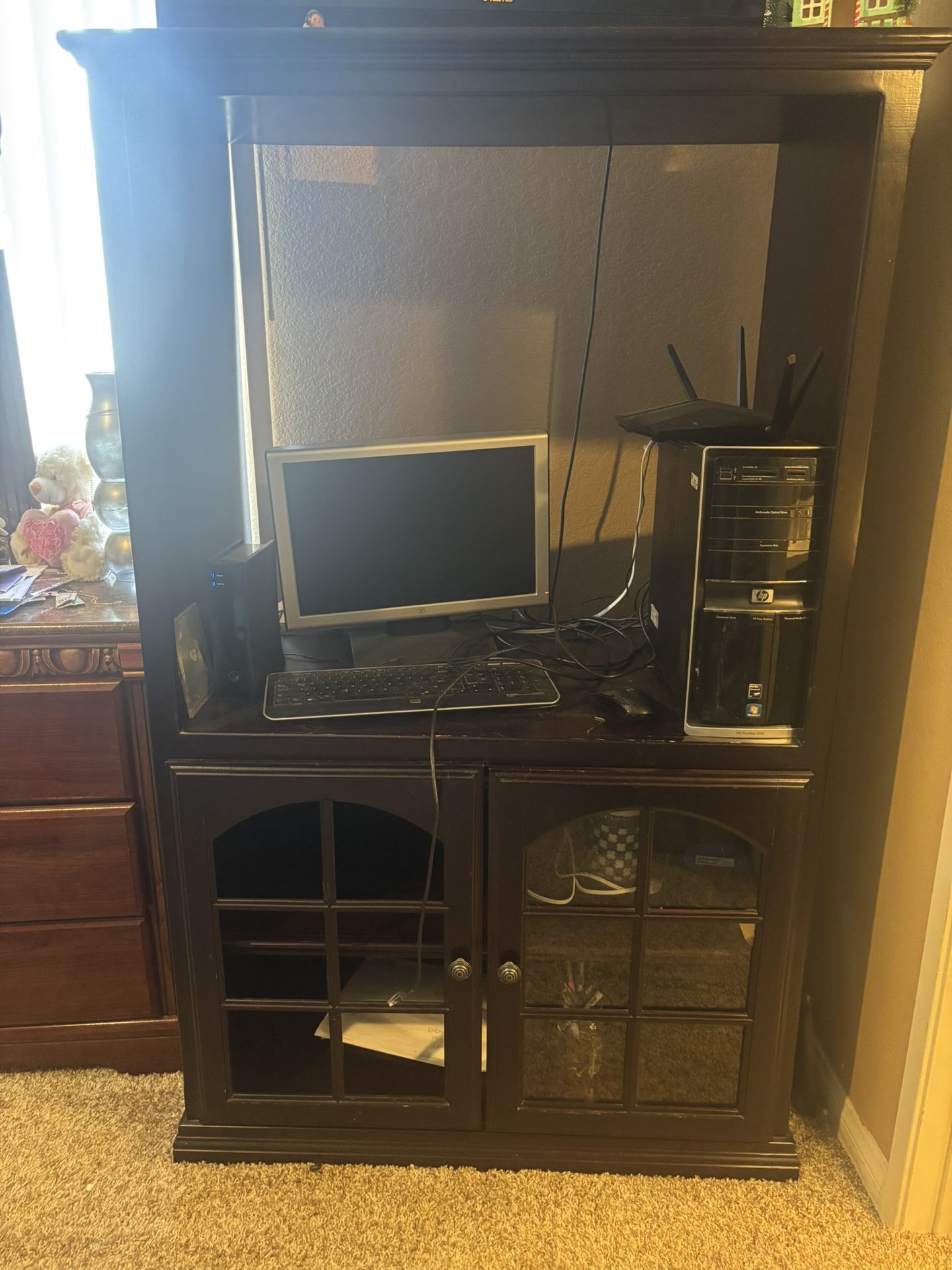 Very sturdy missing one glass from the one door