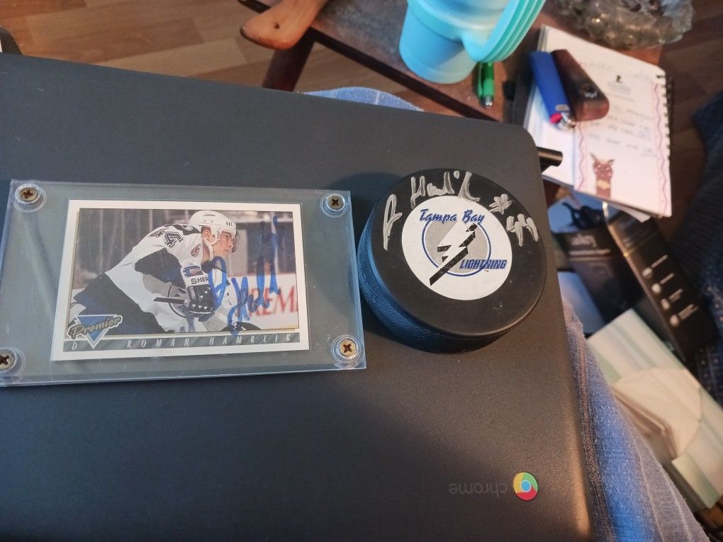 Roman Hamrlik Lighting 1st Draft Lik Signed Puk And Card