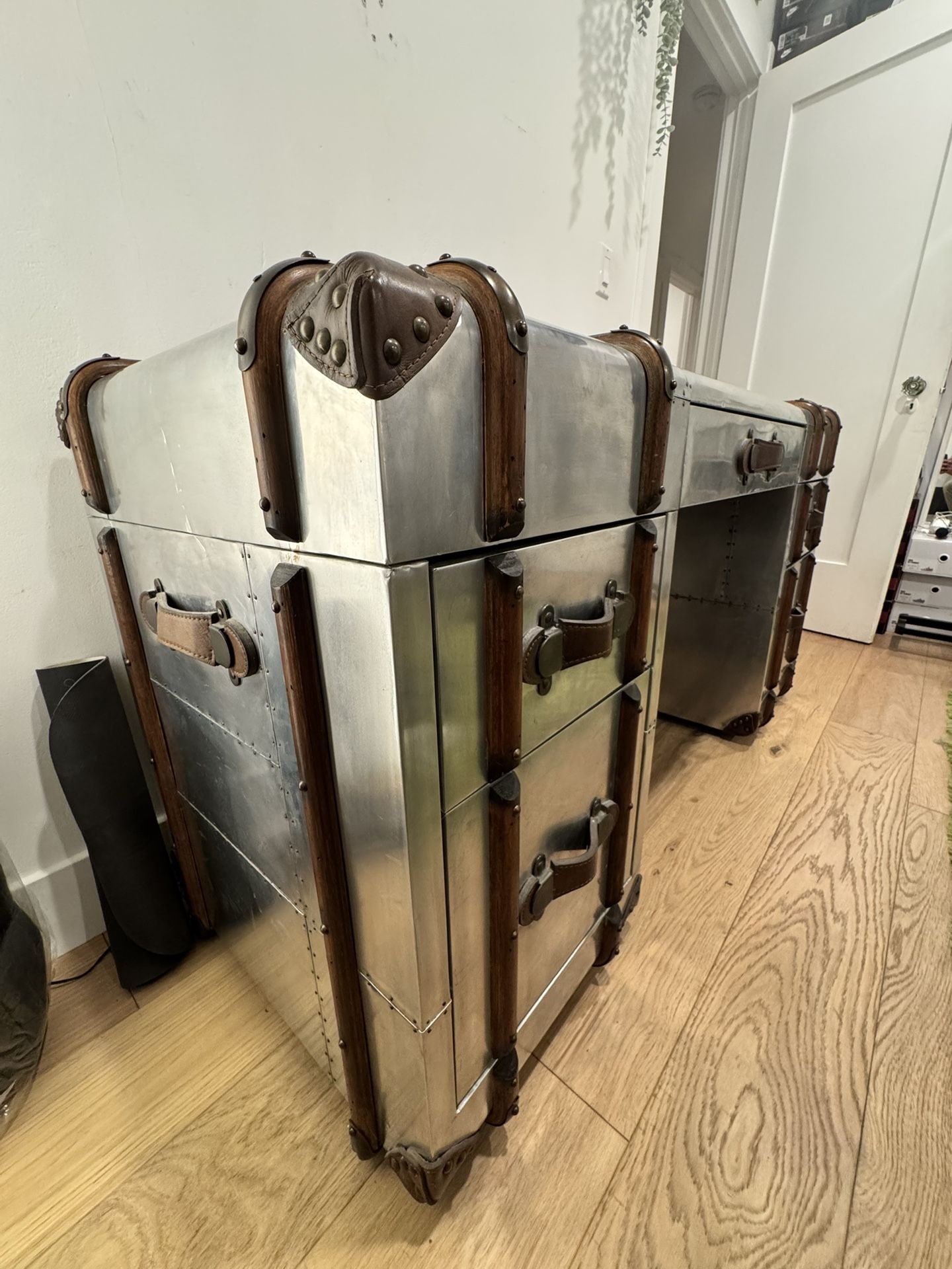Restoration Hardware Richard’s Trunk Collection Polished Aluminum Desk