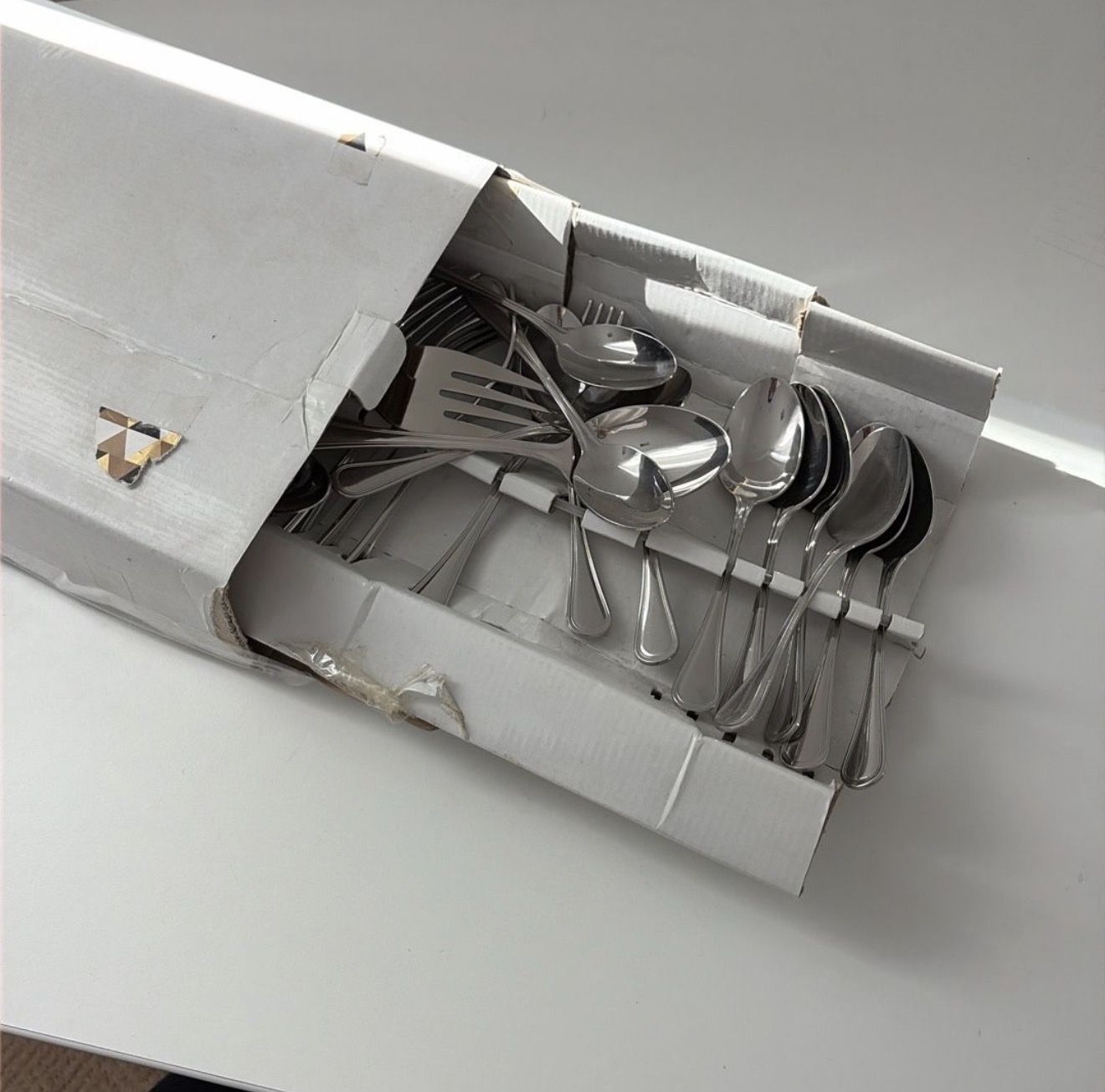 Fresh out of box, new 13 spoons, 13 forks 1 serving fork 1 serving spoon 1 butter knife
