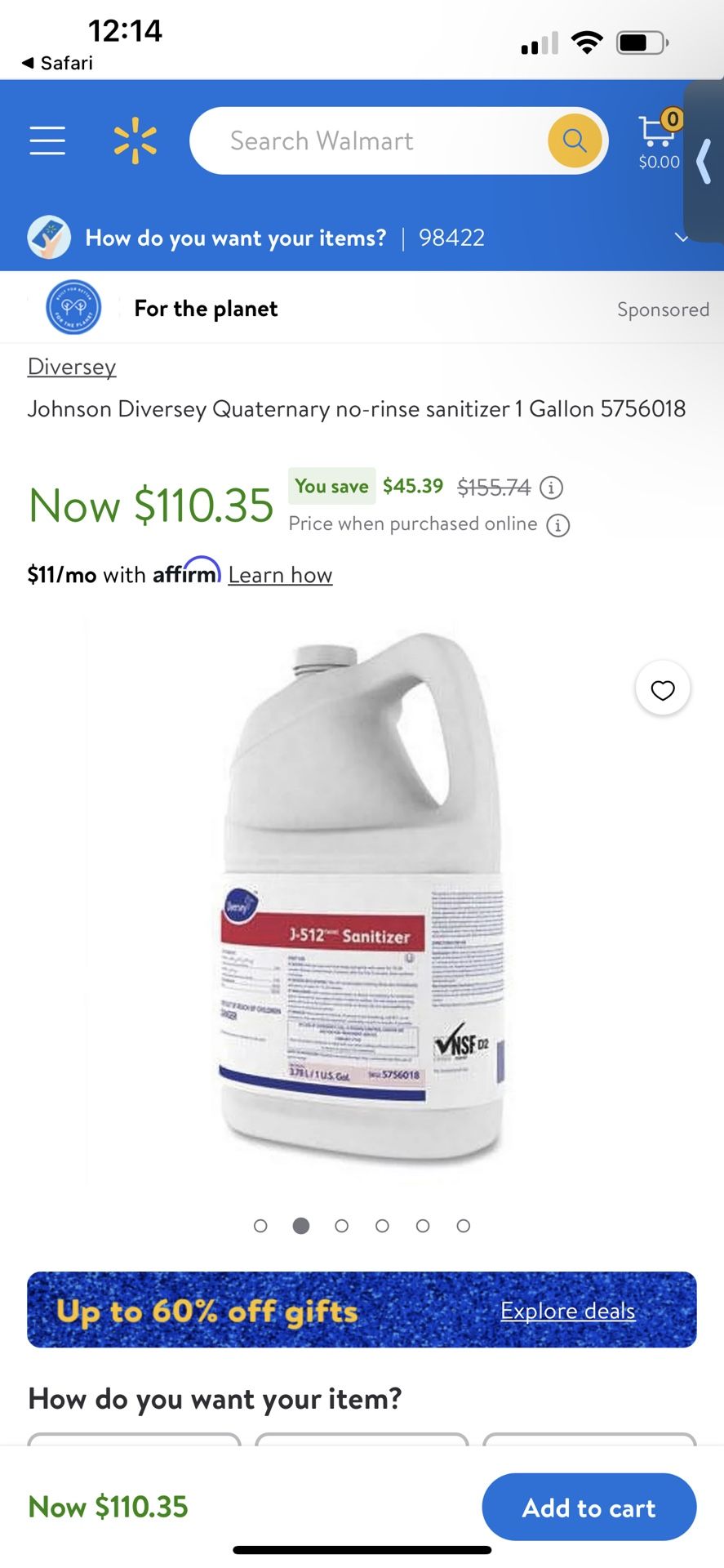 Johnson Diversey Quaternary no-rinse sanitizer 1 Gallon (contact info removed)