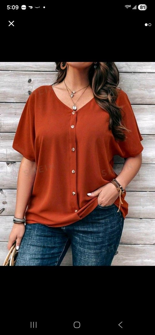 EMERY ROSE Plus Size Women's Orange Button Embellished Short Sleeve Shirt For Spring 18(3X) Lovely fabric, light weight, and flowy. Never worn! Willing to meet in Black Diamond after 3:30 M-F, or PPU in Enumclaw. $$$ Open to offers!! $$$