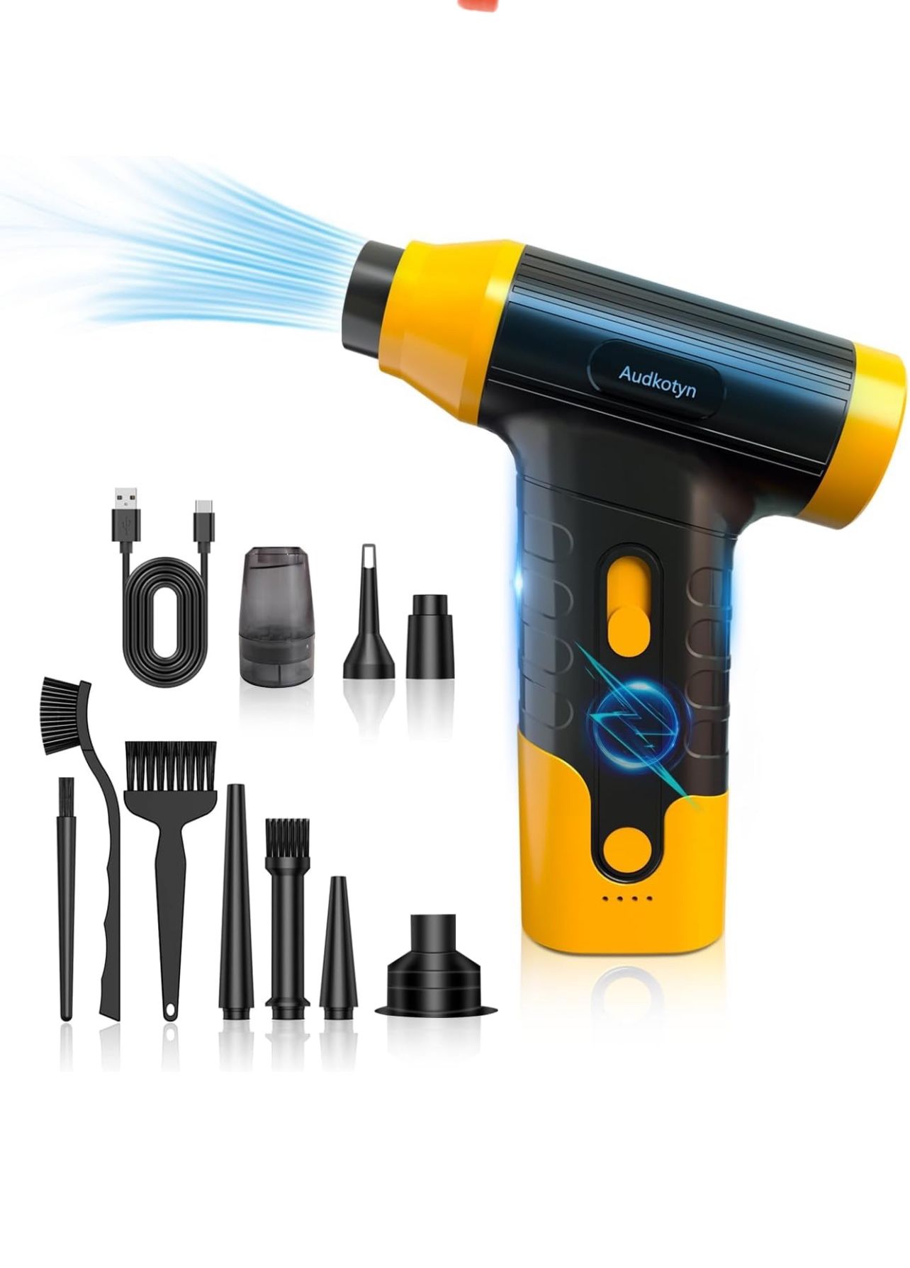Cordless Electric Compressed Air Duster - Electric air blower for Cleaning Keyboard, PC, cameras, Electric Air Pump for Inflatable Cushions, Air Mattress Beds, Boats, Swimming Ring (Yellow/Black)