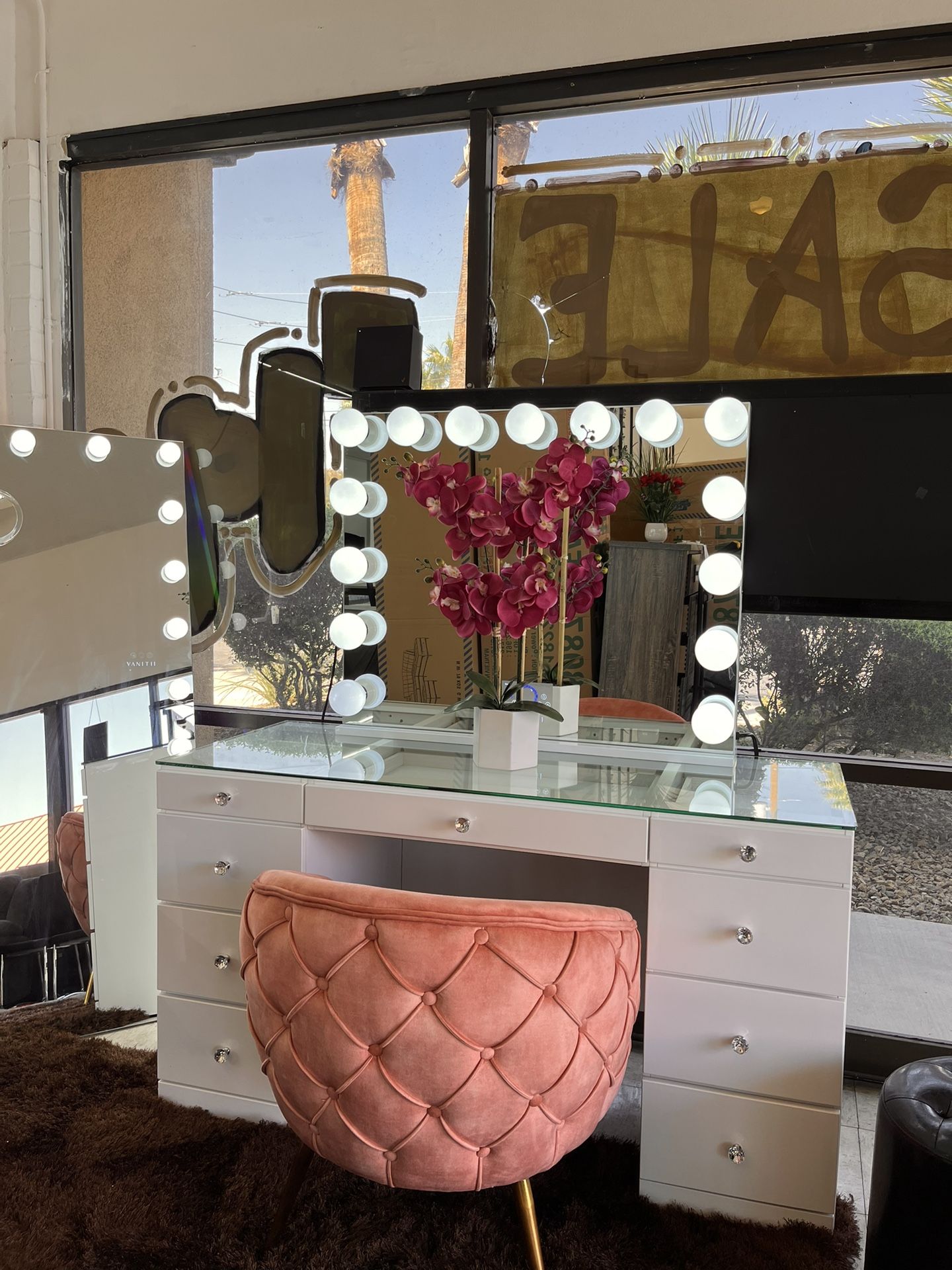 We are selling this brand new vanity table, mirror and chair included. You can finance it no credit needed just with $25 initial payment take it home Visit us to see it in our display. We can deliver as well with a small fee Call us for more info. (702)454-5936